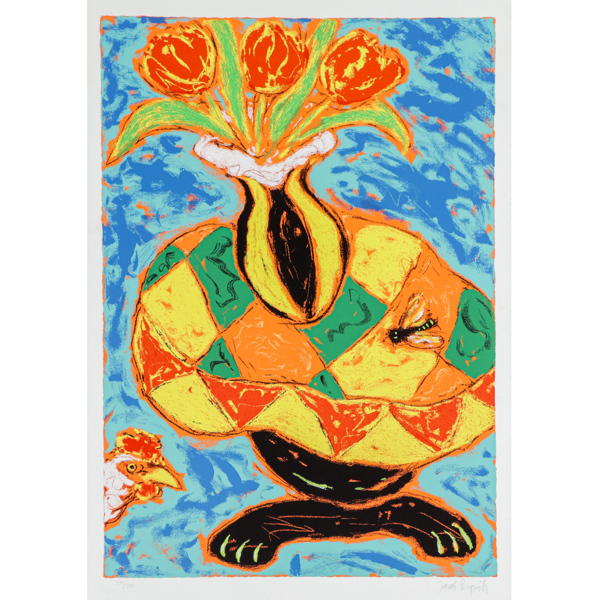 Jack Sangwill, höna och blommor, färglitografi, signerad