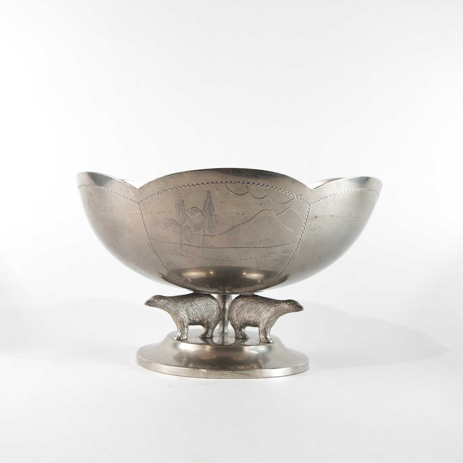 SKÅL PÅ FOT, Lundin & Lindberg, Svenskt Tenn, 1900-tal. H: 14,5cm, D: 24cm.