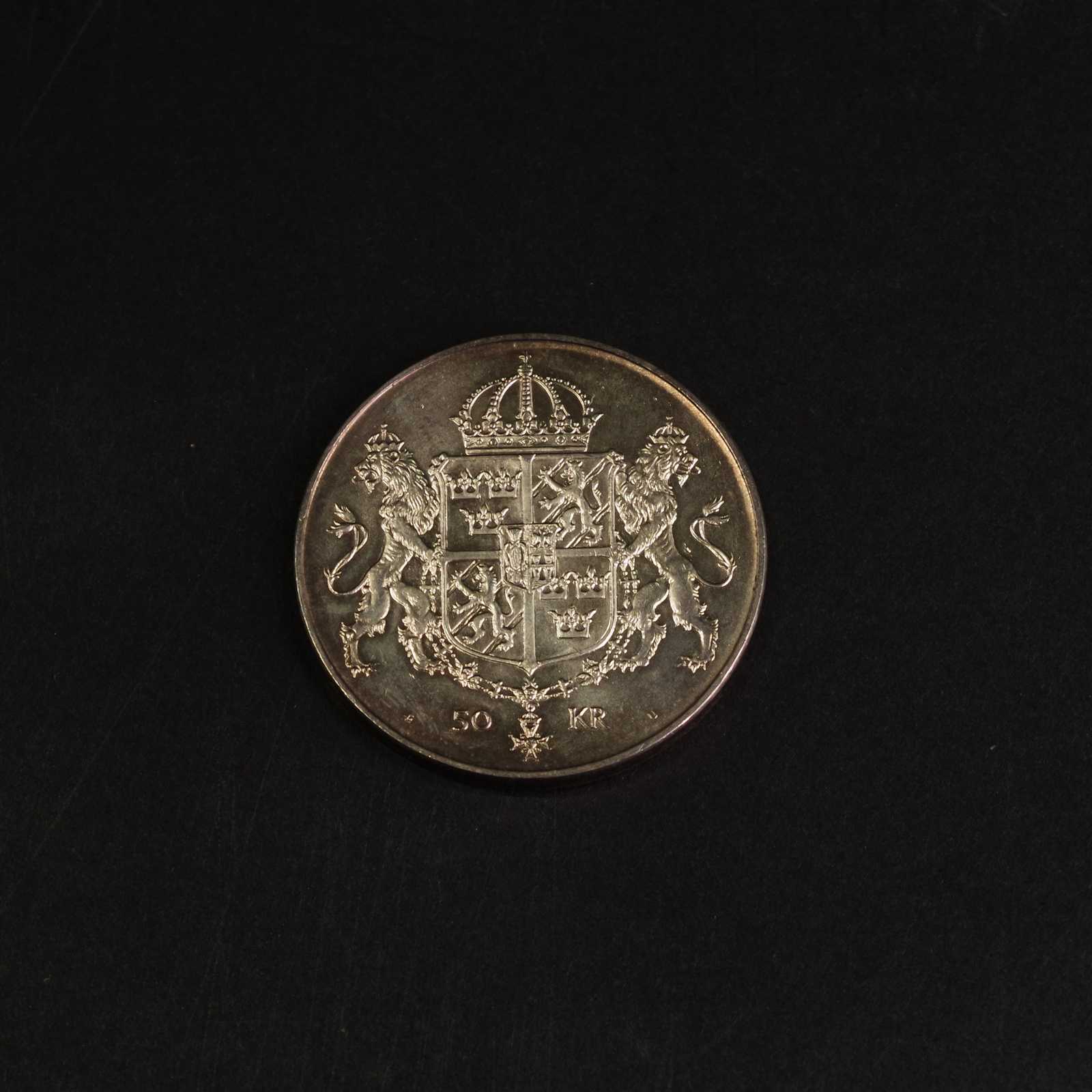 MINNESMYNT silver 92,5% 50:-, 1976 Bröllopet mellan kung Carl XVI Gustaf och drottning Silvia