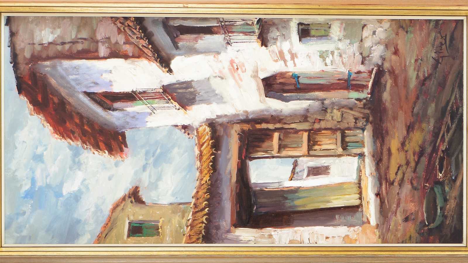 TAVLOR 2st, oidentifierad konstnär, signerade, olja på duk. 39x79cm bildytans mått