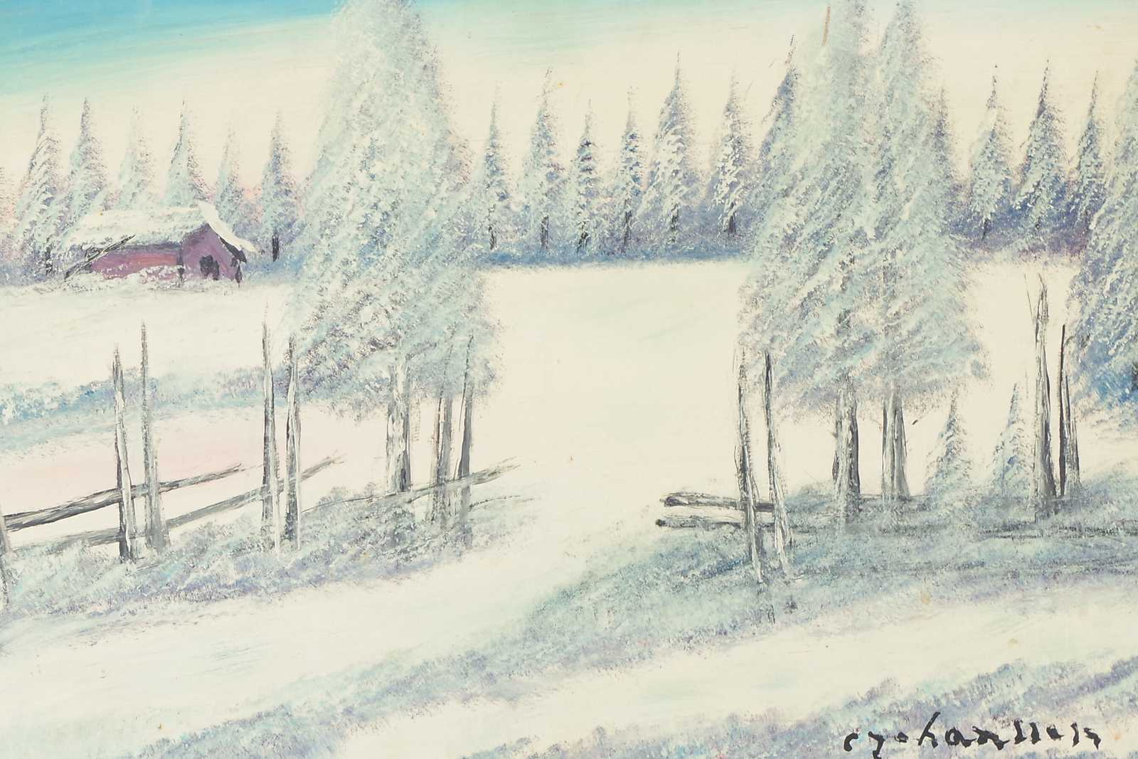 Auktioner Konst & Grafik TAVLA Calle "På spången" Johansson, olja på pannå, signerad. 60x40cm bildytans mått