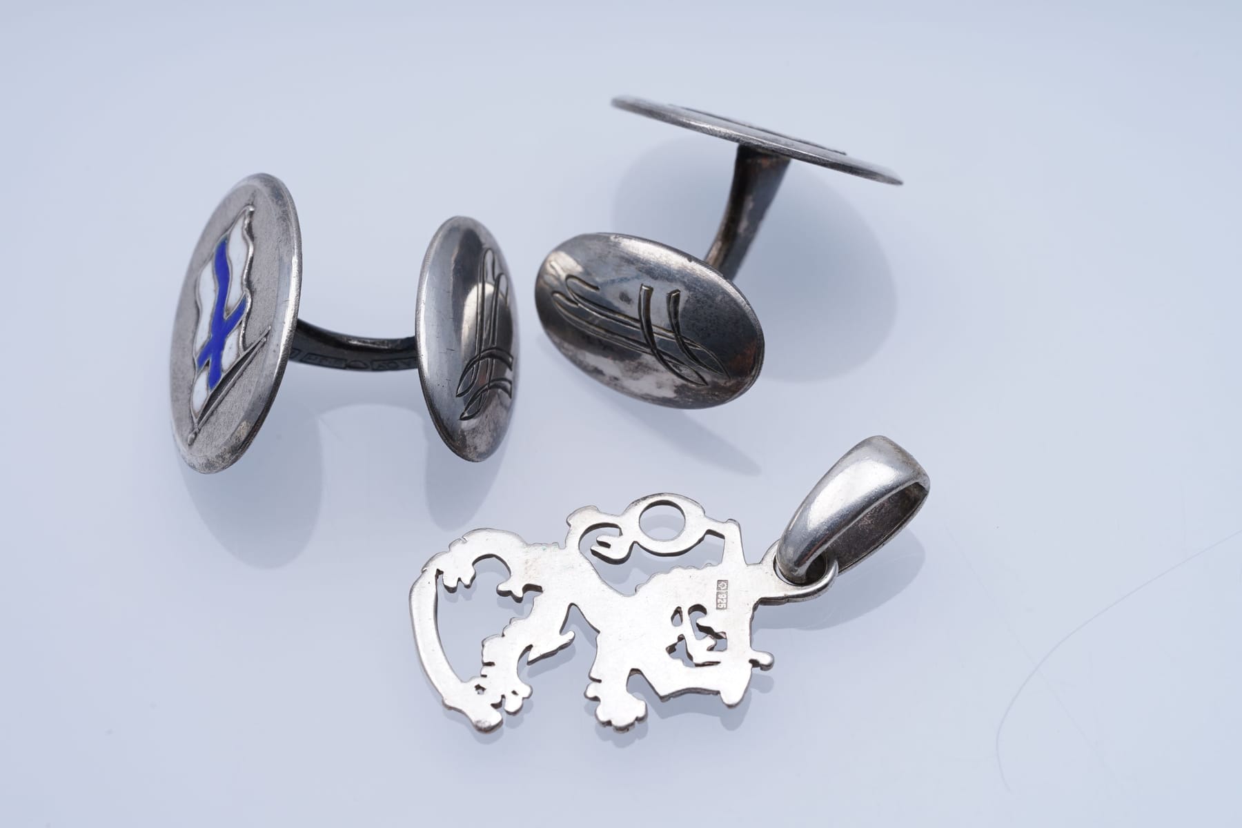 Bilder ! Kalvosinnapit ja Leijona-riipus, hopeaa