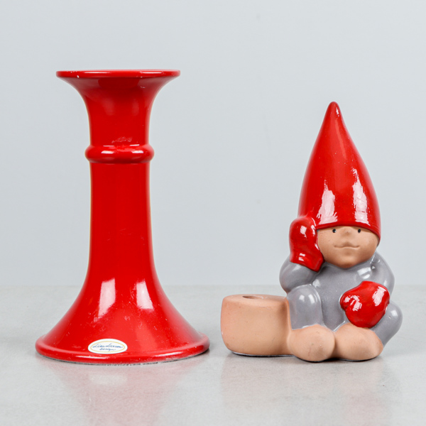 Figurin/ljusstake i form av Tomtenisse samt ljusstake. etikettmärkta.