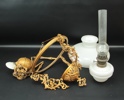 Bilder Takfotogenlampa och vägglampor, glas/gjutmetall, 1800/1900-tal.