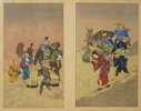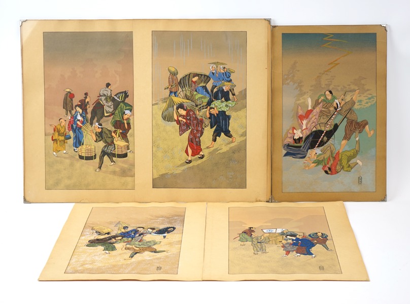 Bilder Oidentifierad konstnär, akvarell med täckvitt, 5 st. Japan, sannolikt 1900-talets början.