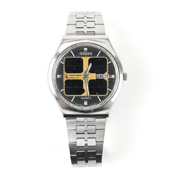 Citizen Crystron Solar Cell, armbandsur, herr, stål, quartz, Japan, 1976.