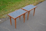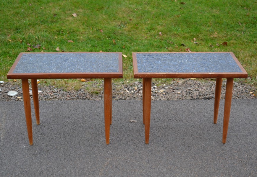 2 Mindre bord/sidobord. Teak med mosaik, 1960-talet.