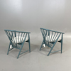 2st fåtöljer från Gemla, modell Solfjädern. Modellen ritades 1948 av Sonna Rosén och har blivit en av Gemlas mest uppskattade klassiker.
