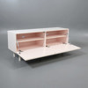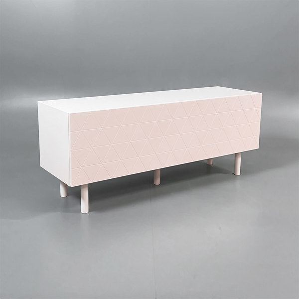 Mediabänk från Decotique, modell Abstract i puderrosa färg. Nedfällbar lucka med geometriskt mönster.