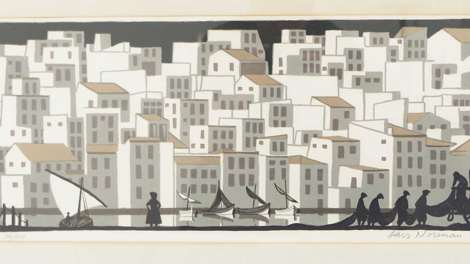Auktioner  Konst & Grafik  TAVLA Lars Norrman, färglitografi, signerad & numrerad 136/310. 58x26cm bildytans mått