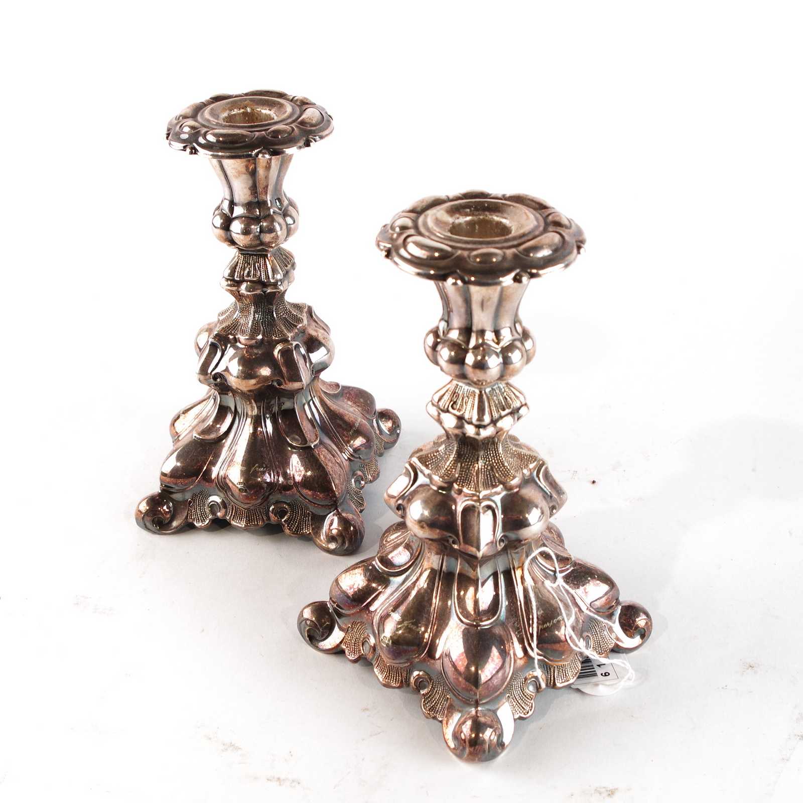 Auktioner Guld, Silver & Smycken LJUSSTAKAR 1 par. silver, barock stil. H:18,5cm. 1069 gram totalt inkl. fotfyll. Gåvogravyr.