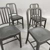 Fyra caféstolar från Emeco, modell Navy 111. Designad för användning både inomhus och utomhus.