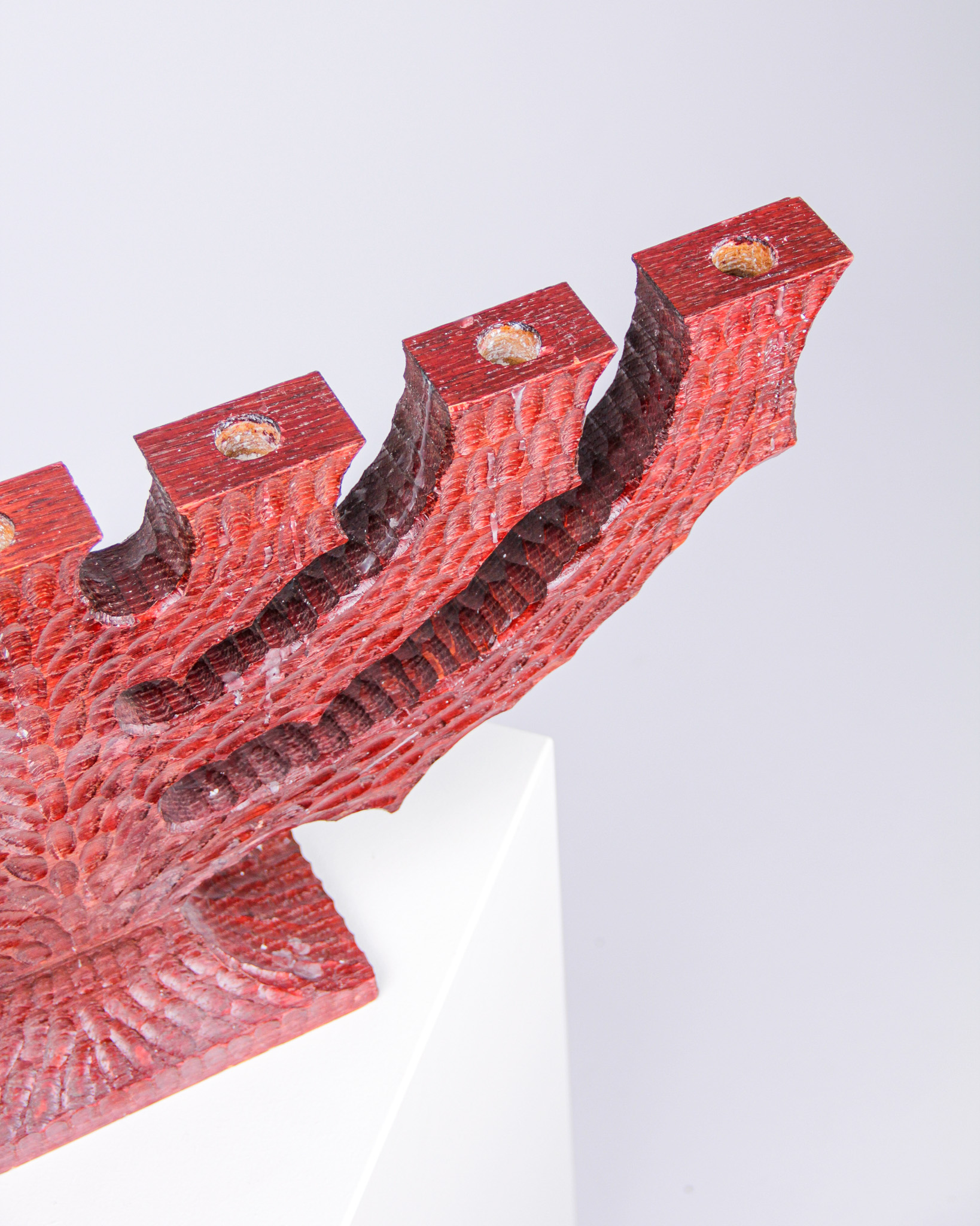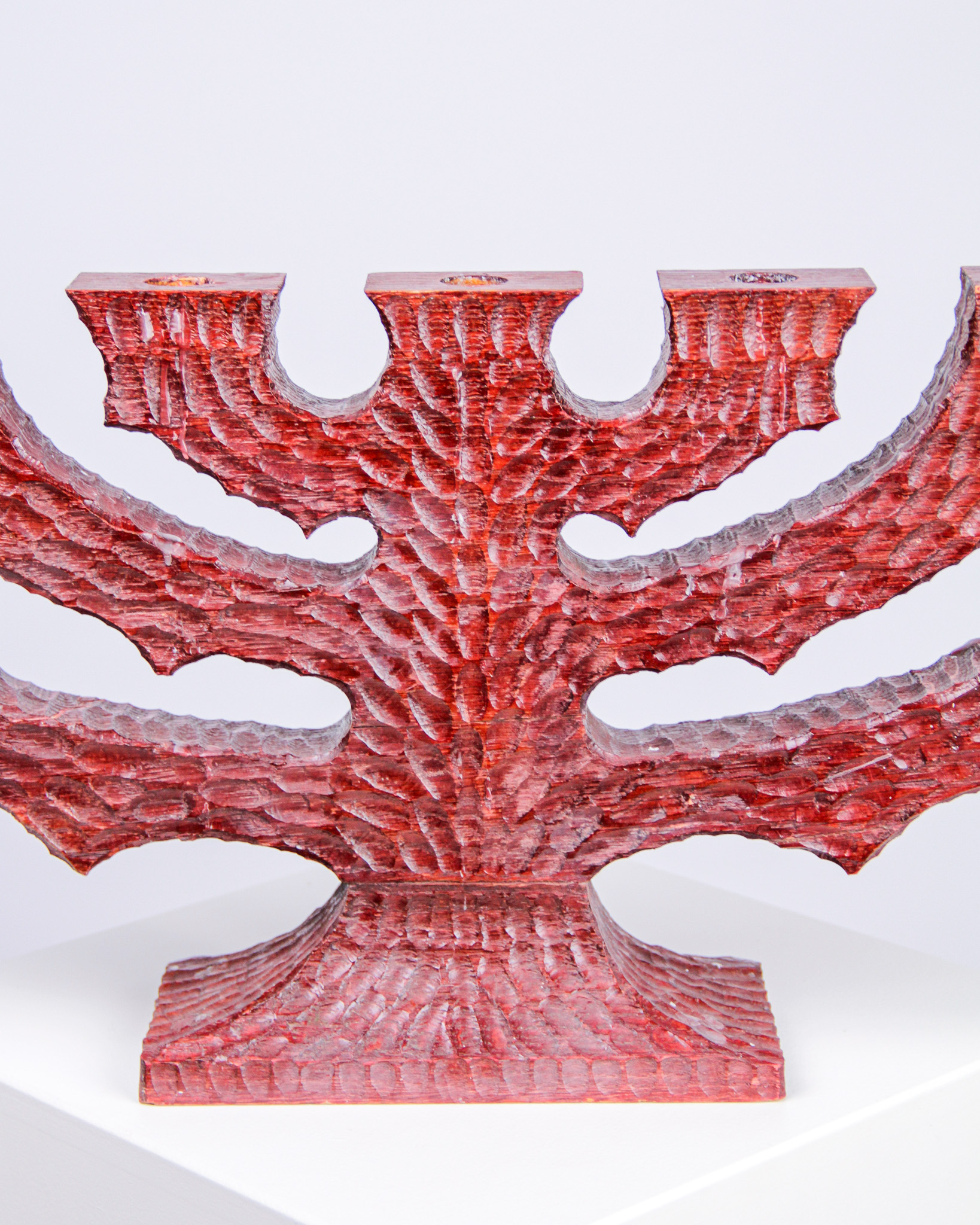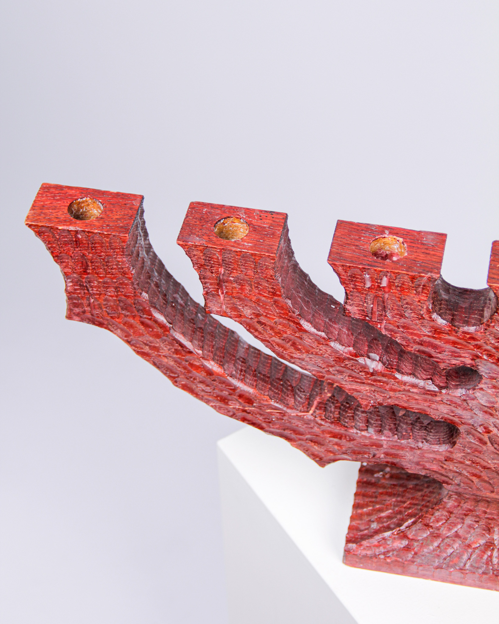 Ljusstake, 7-armad, rödbetsat snidat trä (Medieval Modern)