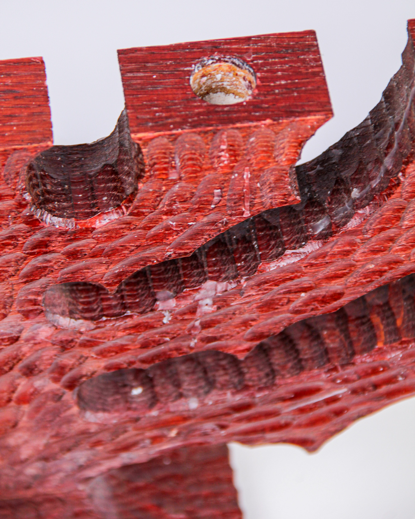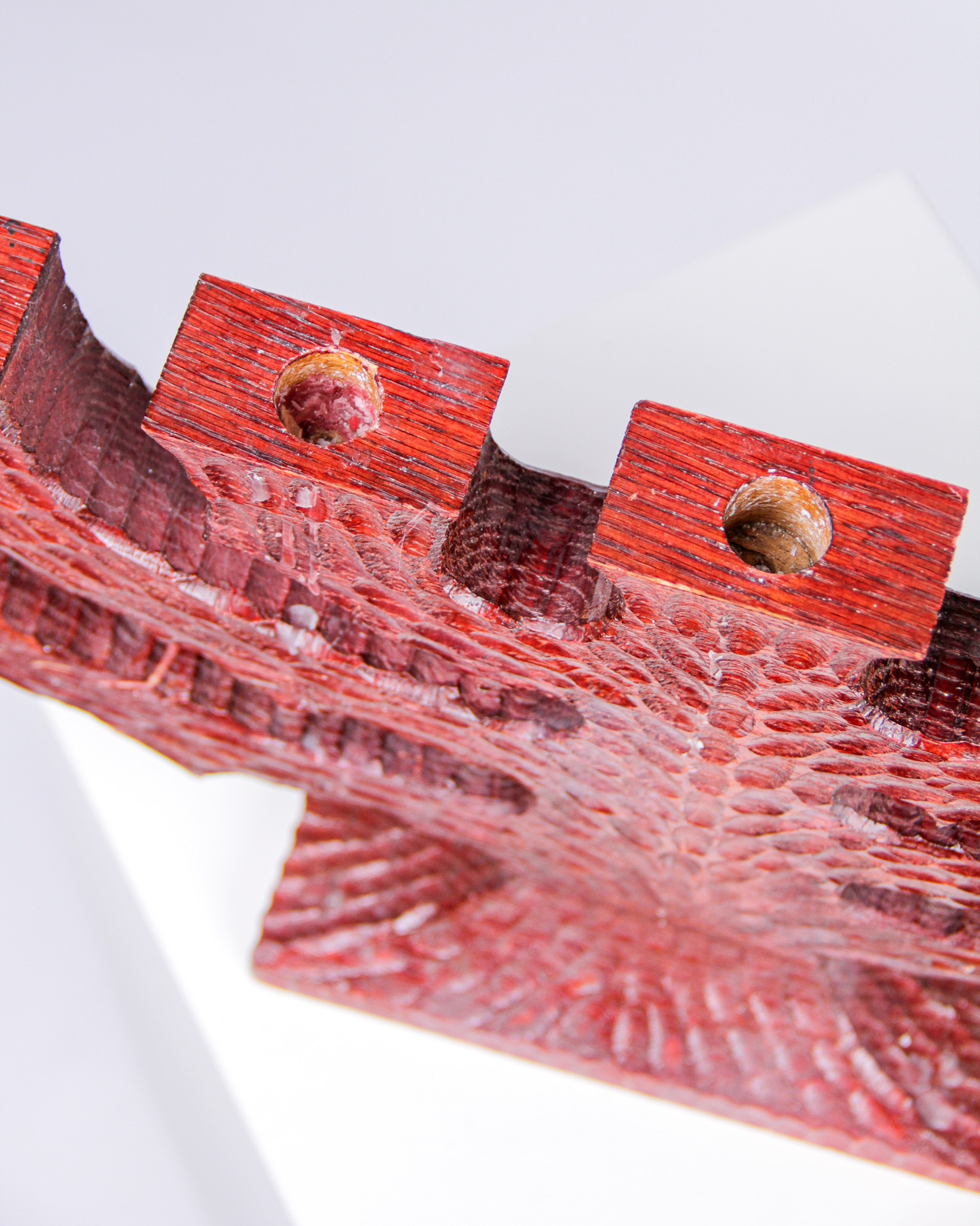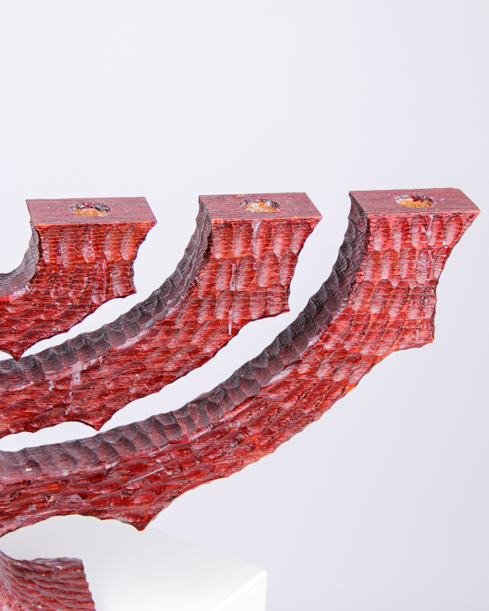 Ljusstake, 7-armad, rödbetsat snidat trä (Medieval Modern)