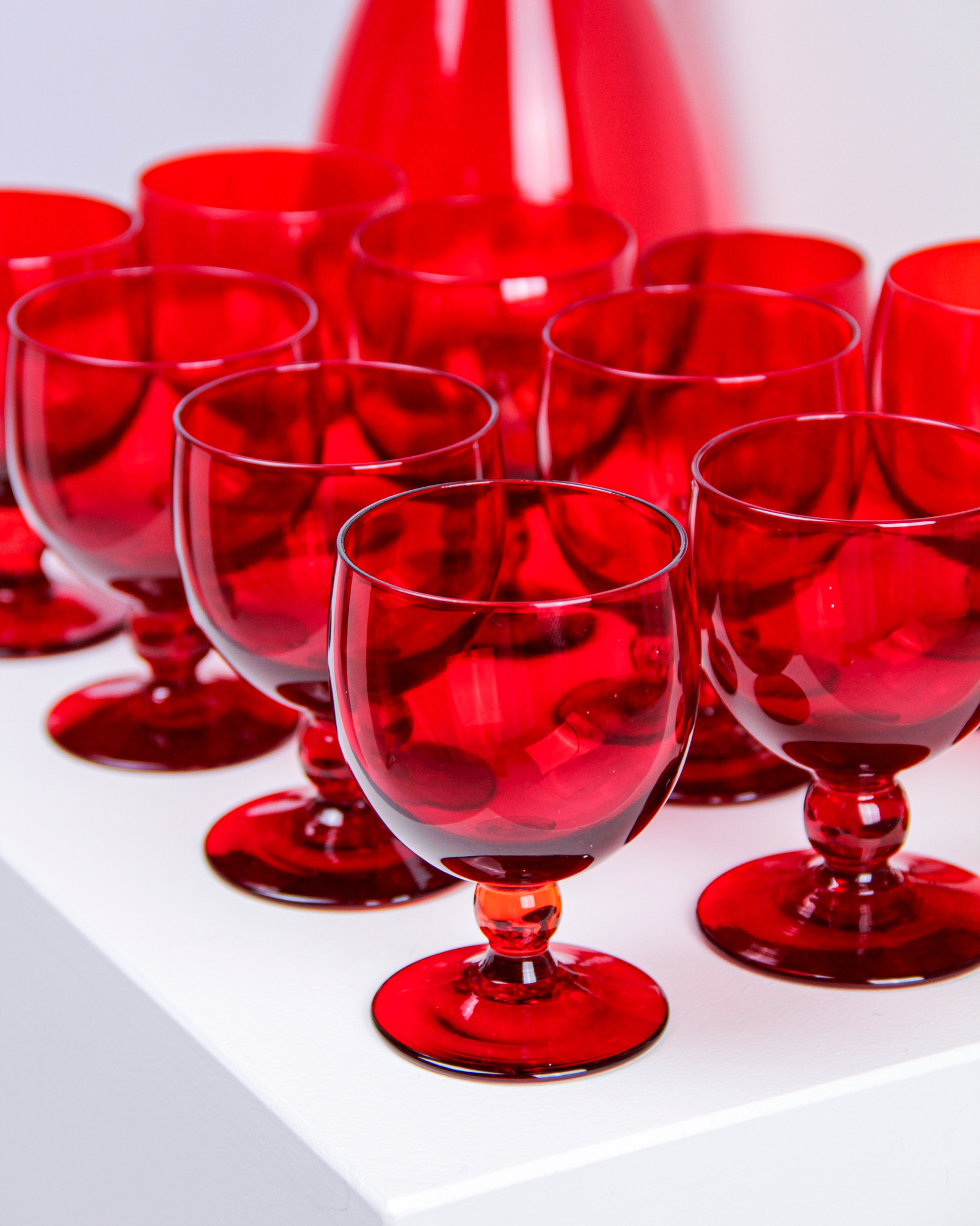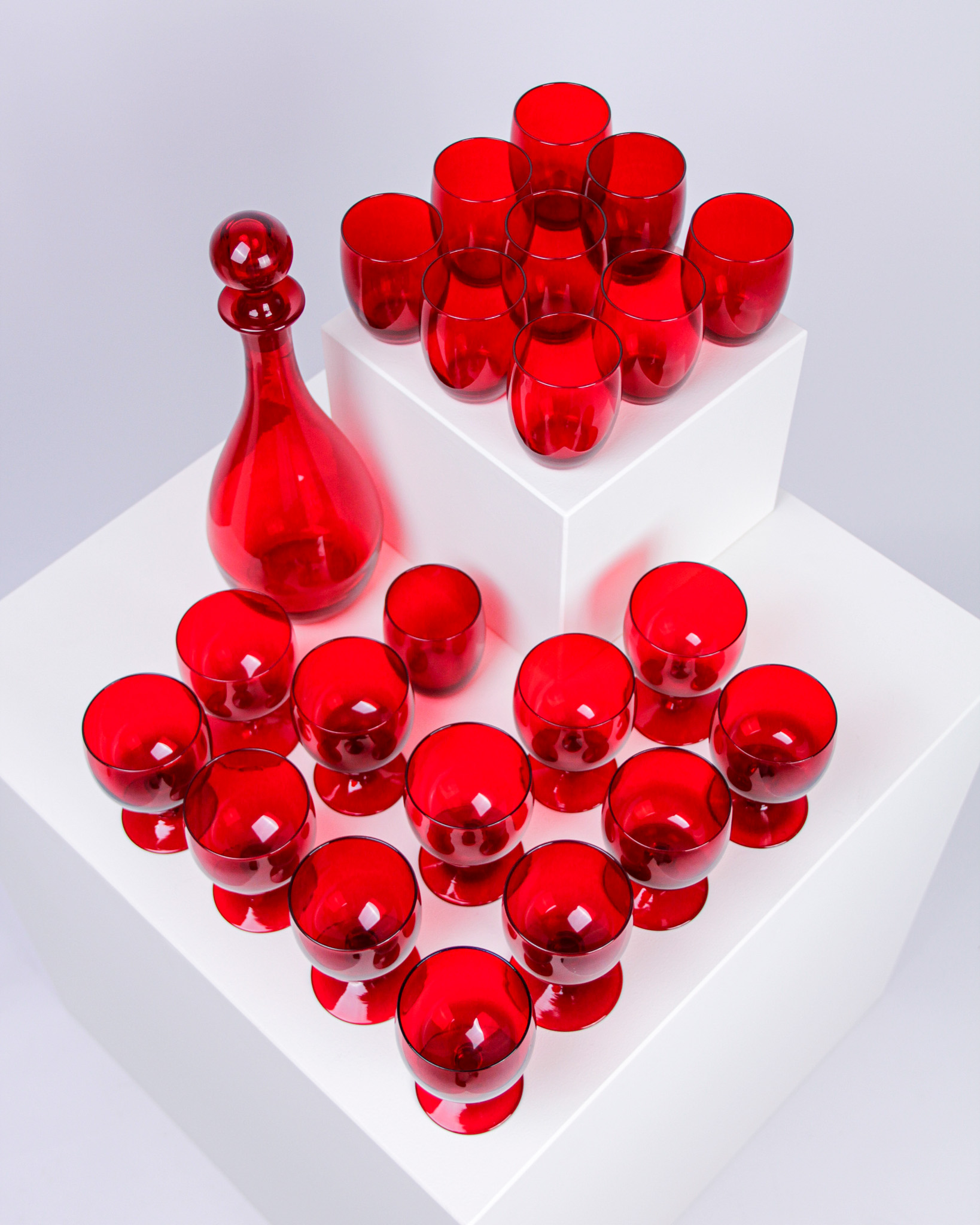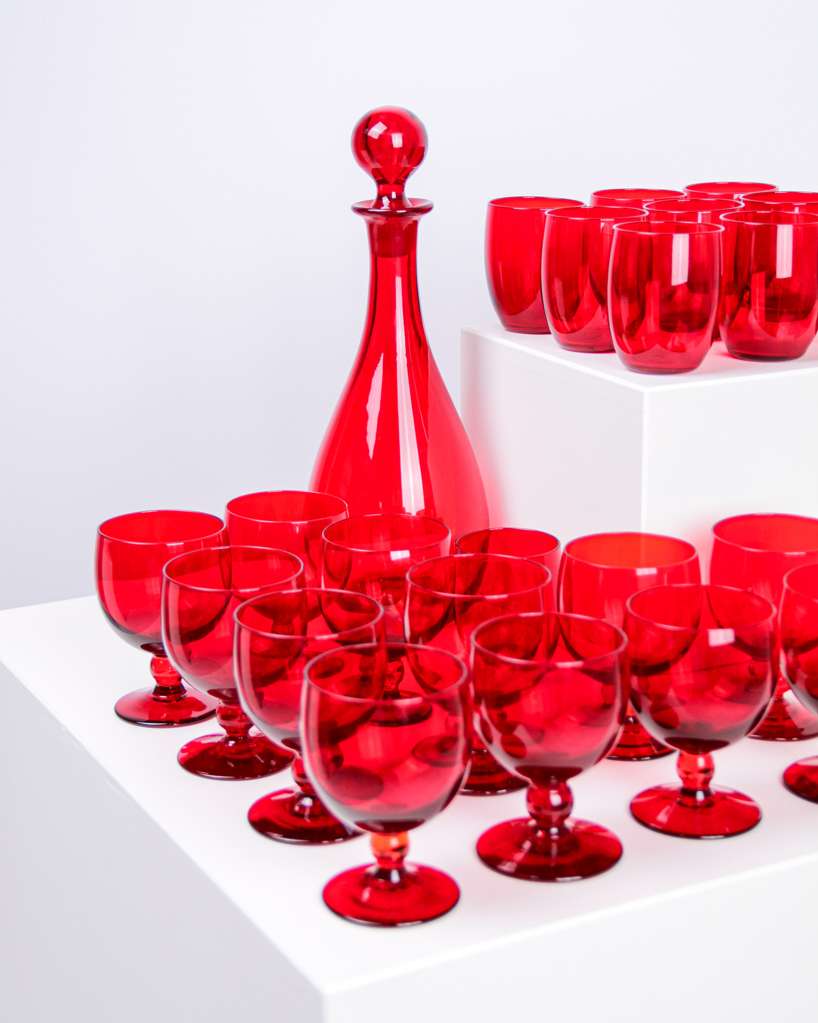 Glasservis, 23 delar, rubinrött glas, Monica Bratt, Reijmyre Glasbruk (Medieval Modern)