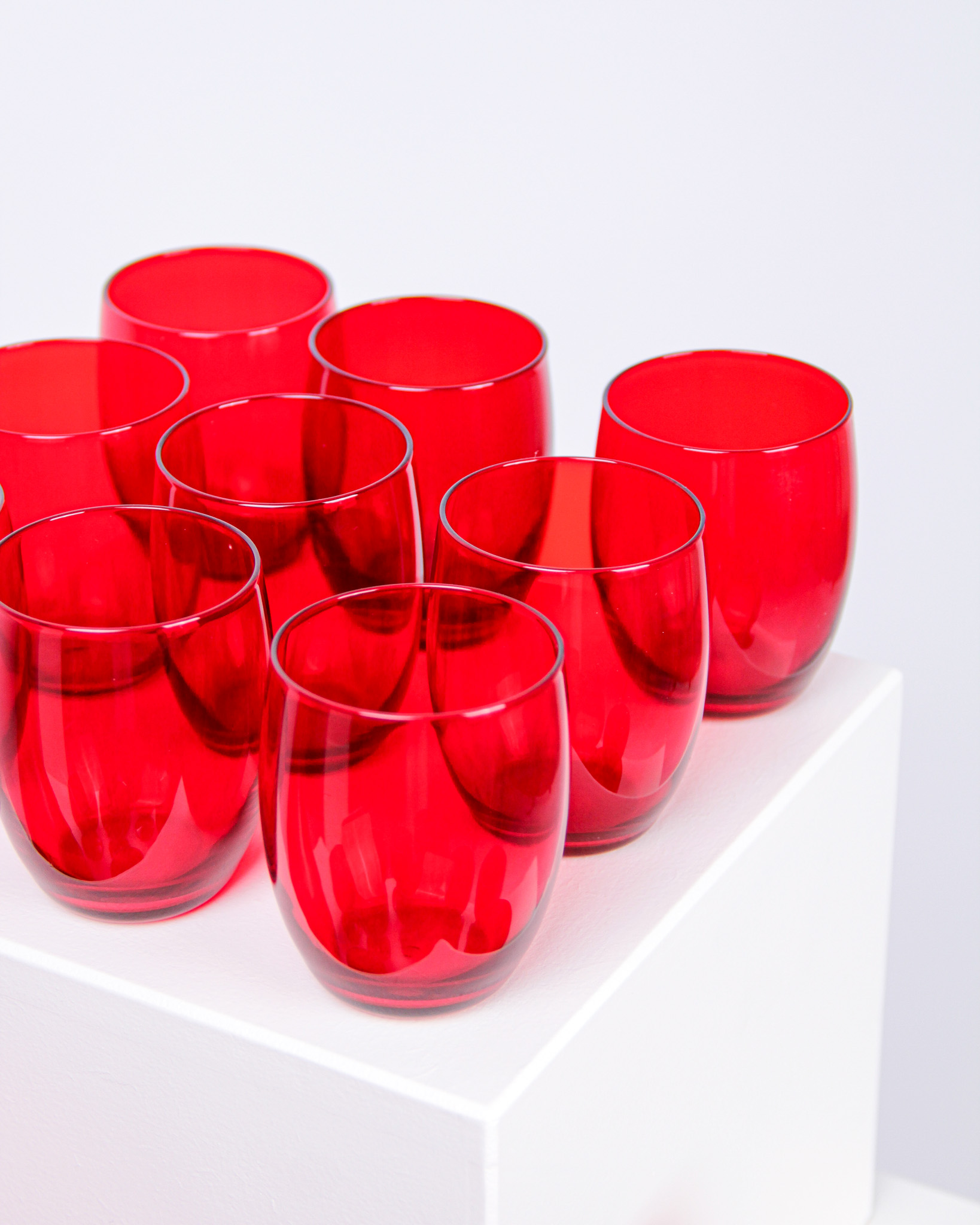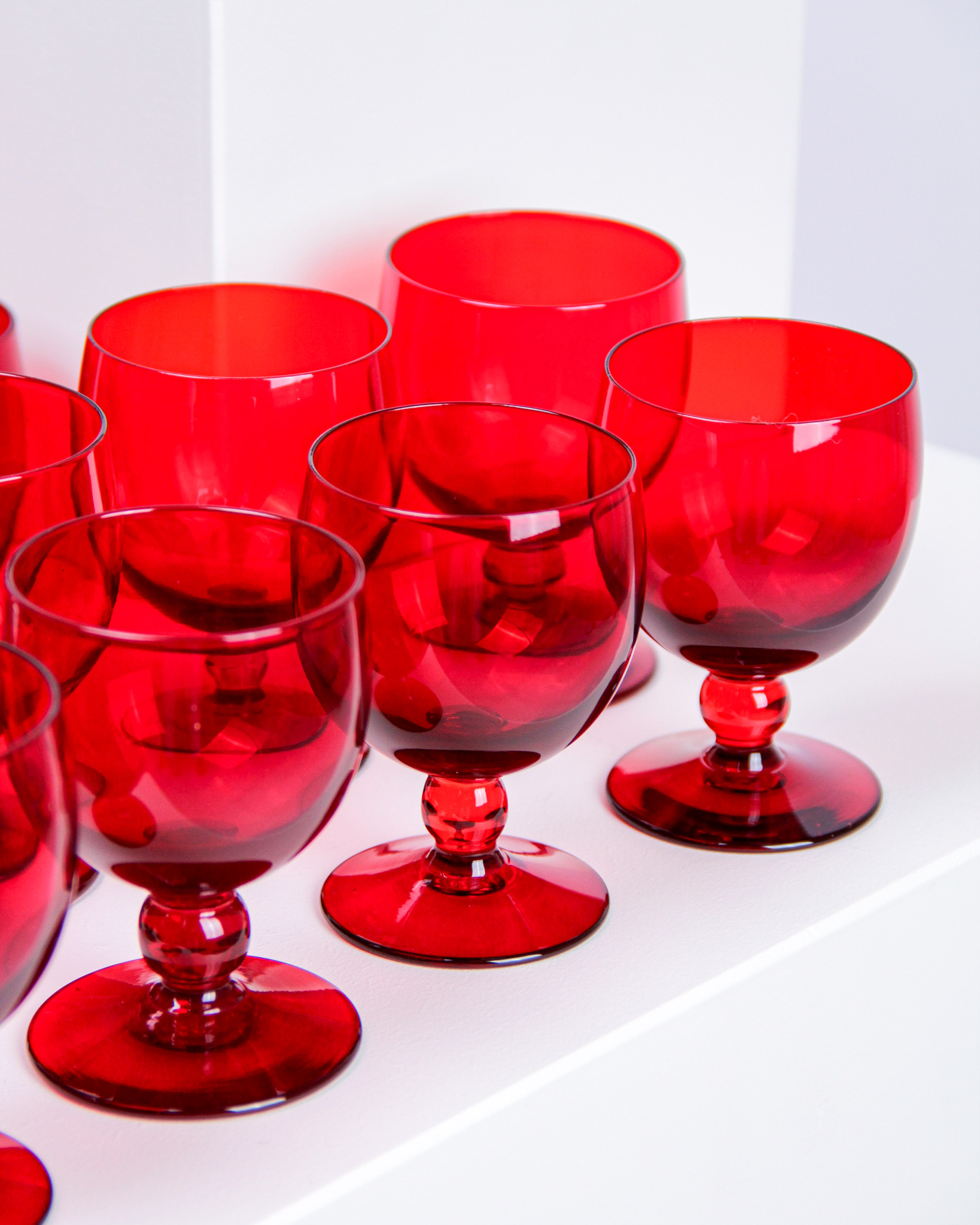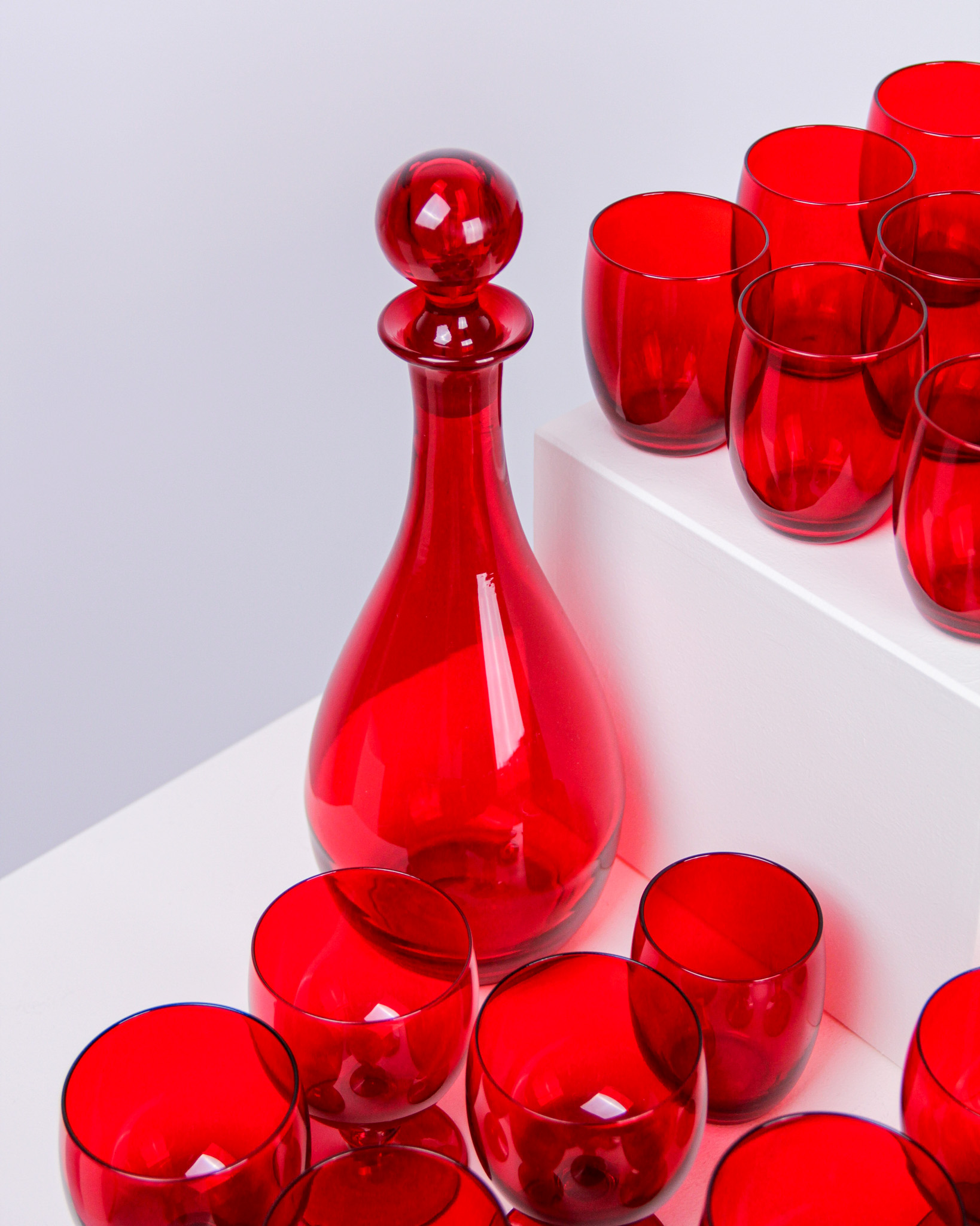 Glasservis, 23 delar, rubinrött glas, Monica Bratt, Reijmyre Glasbruk (Medieval Modern)
