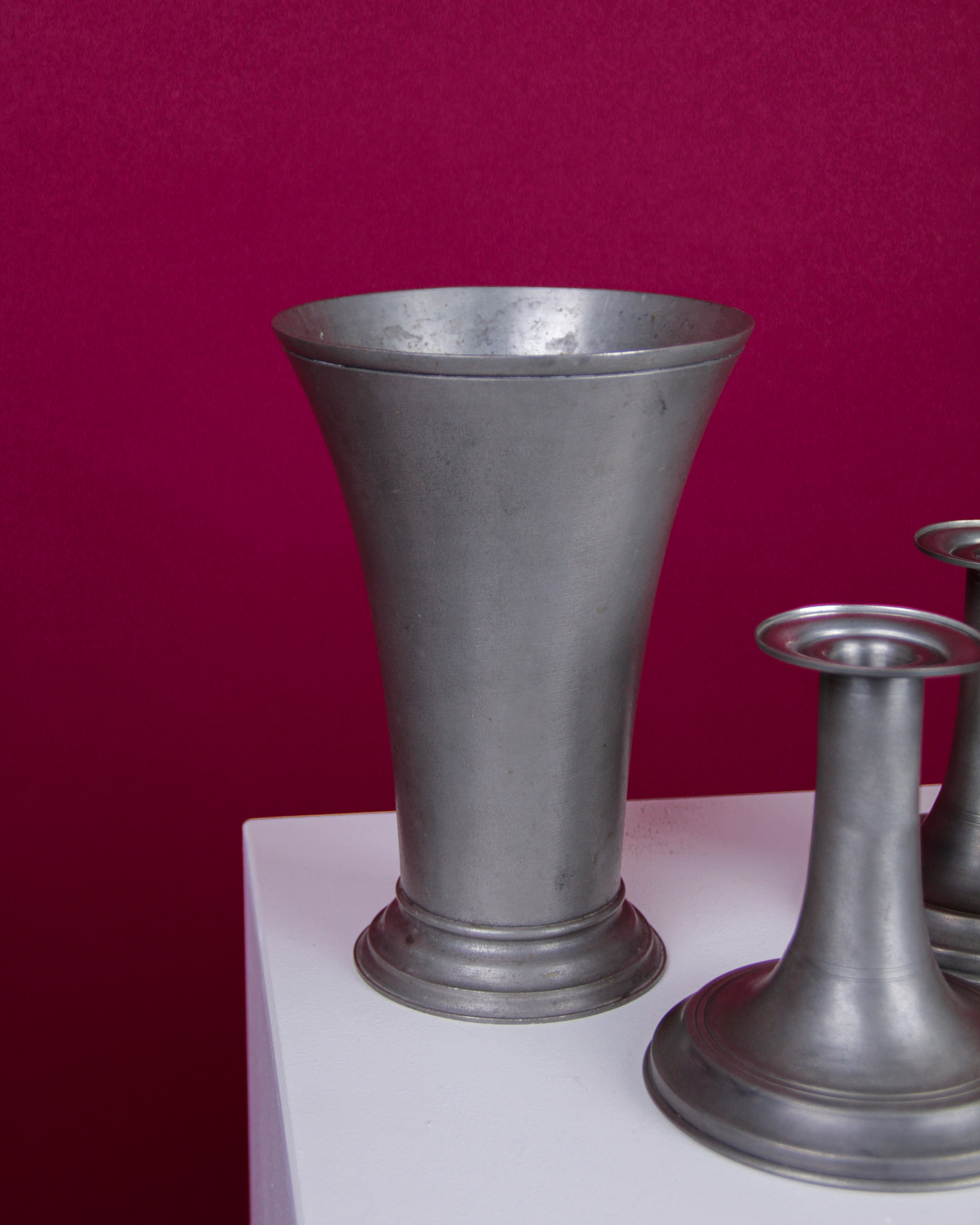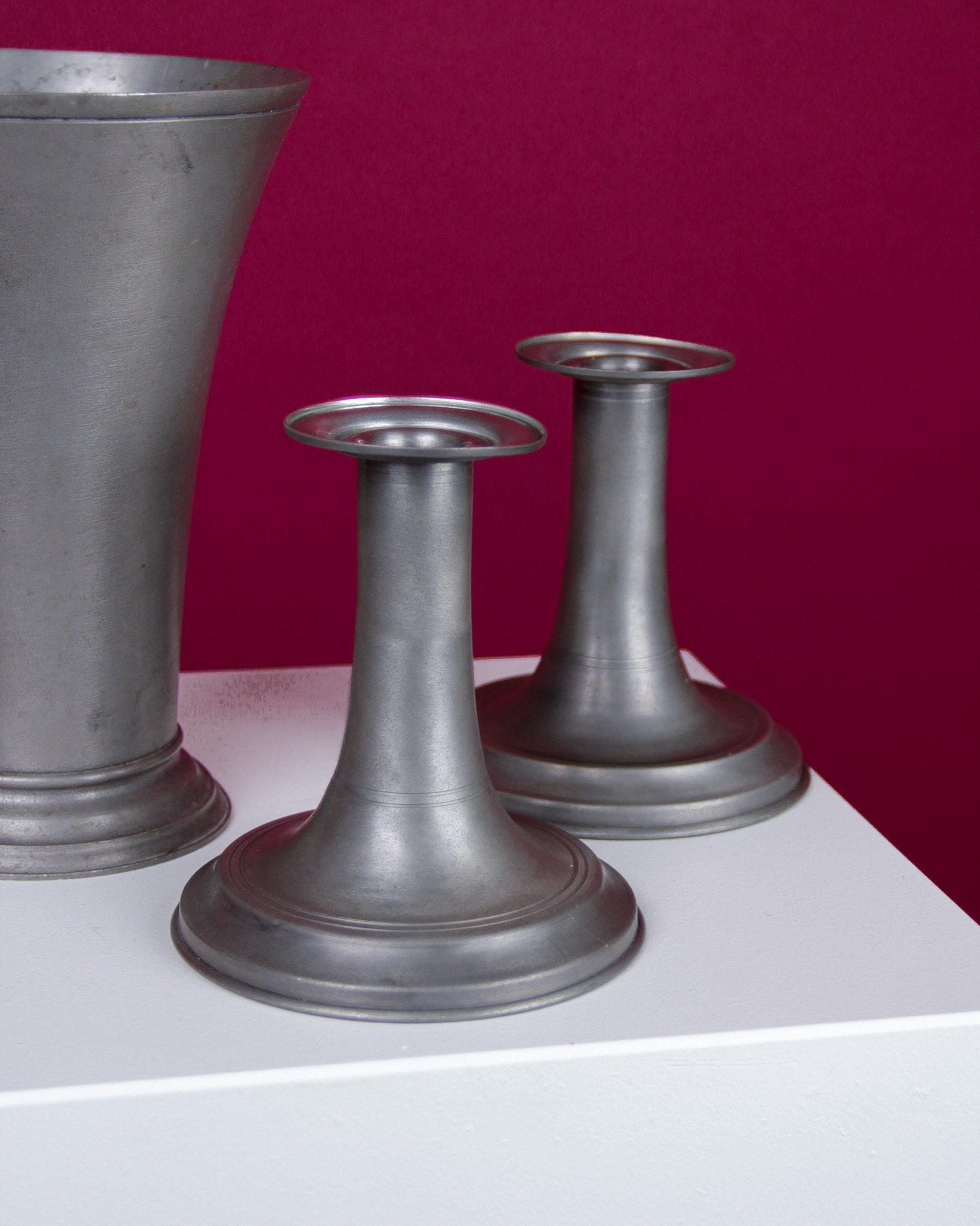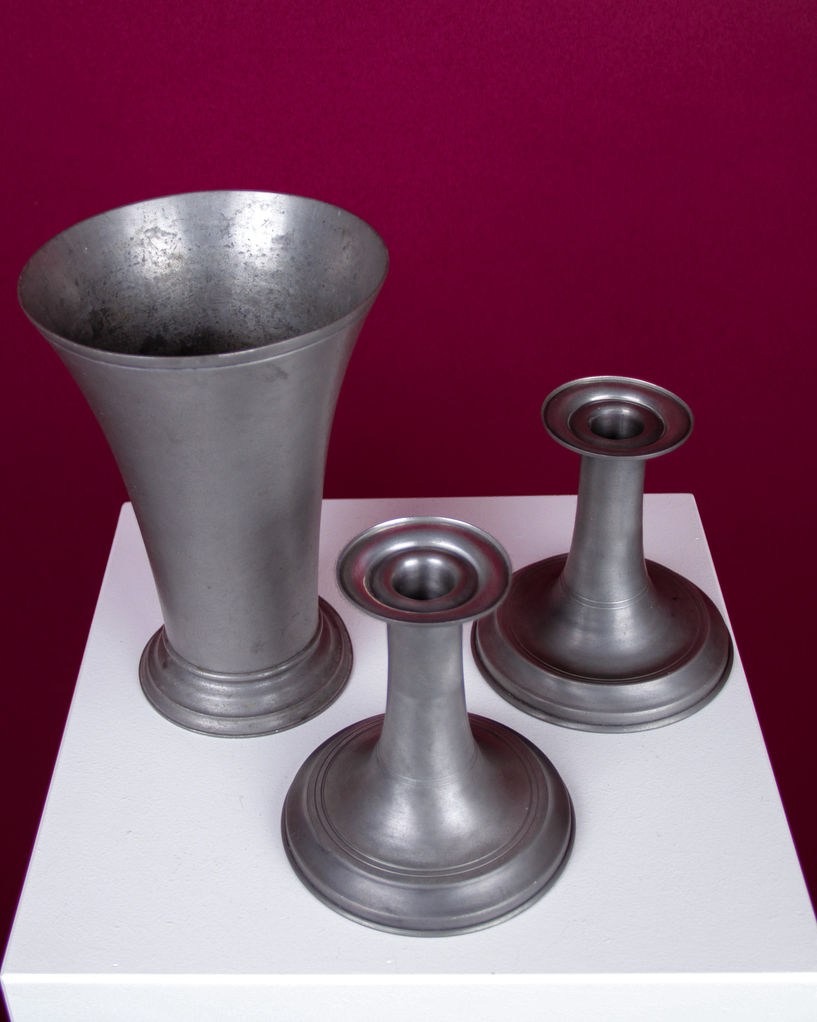 Vas och ljusstakar, 3 st, tenn, Scandia Tenn och Schreuder & Olsson (Medieval Modern)