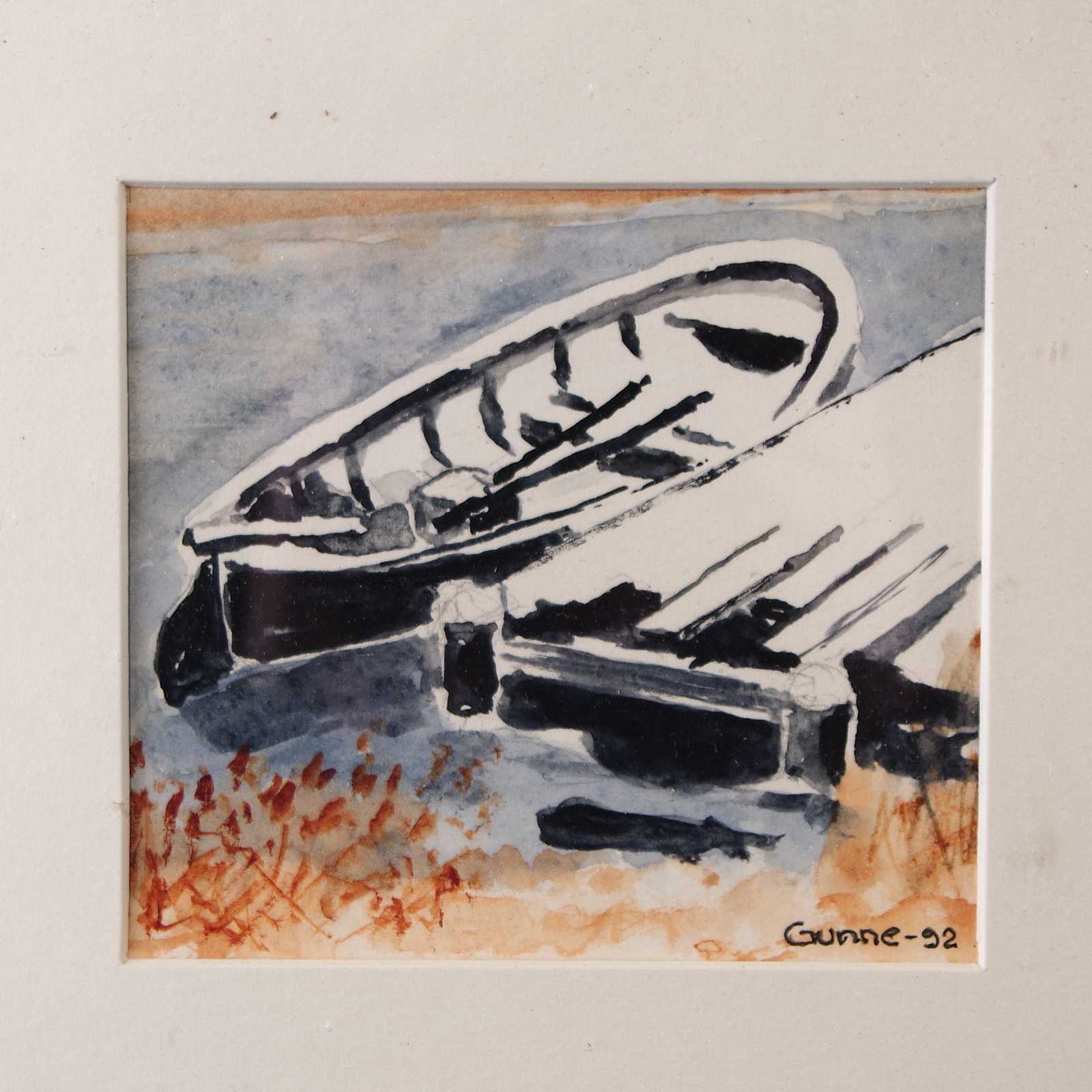Bilder TAVLA Gunnar "Gunne" Hellström, "Båt vid Kannikenäset", akvarell. 11x10cm bildmått.