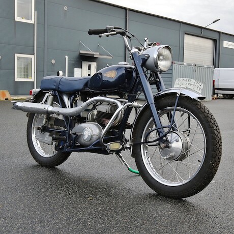 Bilder Motorcykel, Monark 550, "Blue Arrow", årsmodell 1955, reg nr XAS362, inkl. originalskidor m.m. Mätarställning 3378 mil. OBS! Av administrativa skäl kan detta objekt endast säljas till köpare som är bosatta i Sverige. Bud från köpare bosatta i andra länder kommer att annulleras.