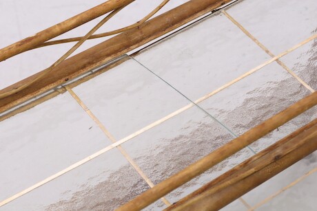 Blomsterbord i rotting på hjul, 1900 talets andra hälft, 85 x 27 cm, h = 60 cm