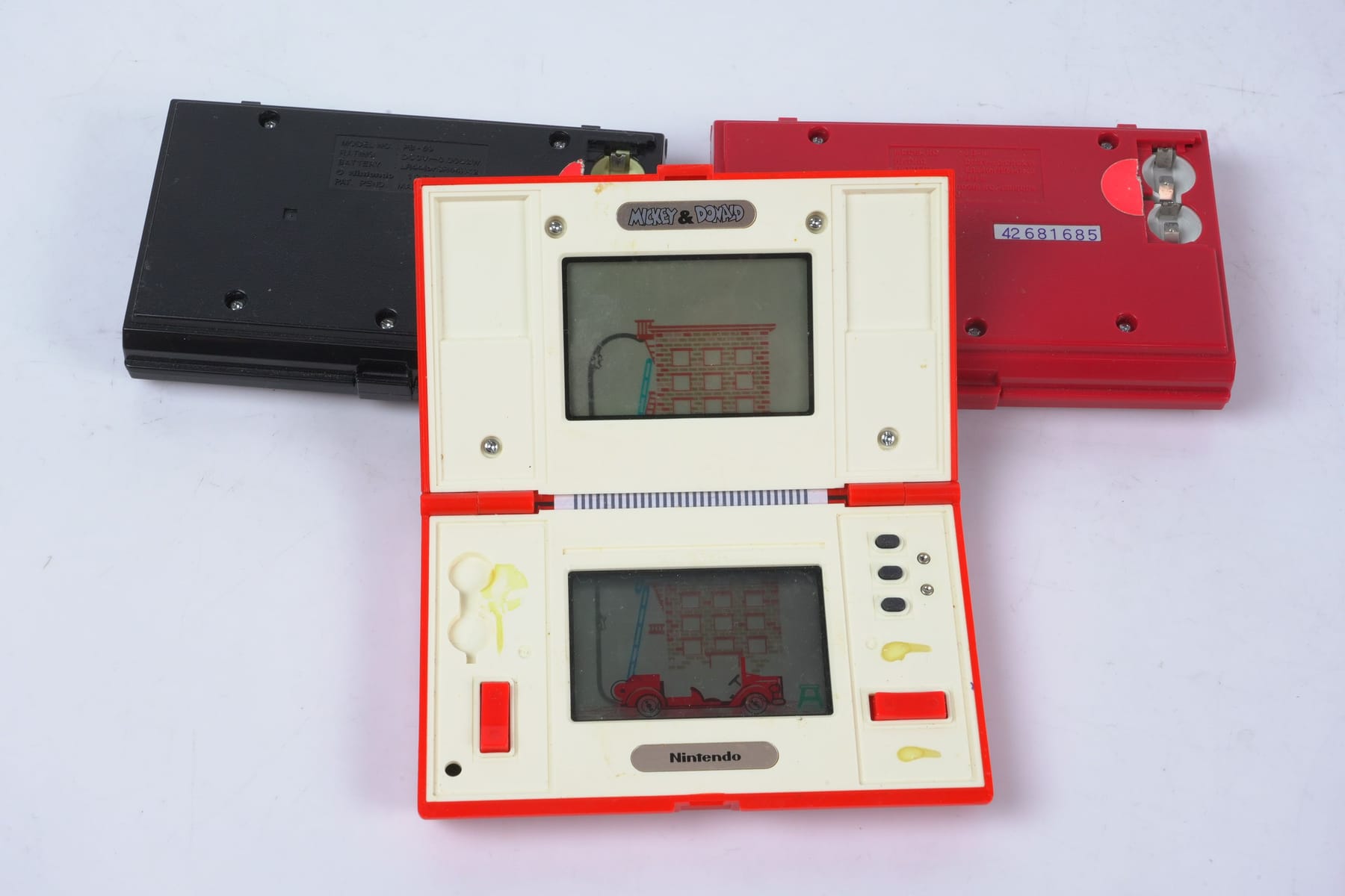 Bilder SPEL, 4 st, Game & Watch, Super Mario Bros, Safebuster, Pinball, samt Mickey & Donald, 1980-tal