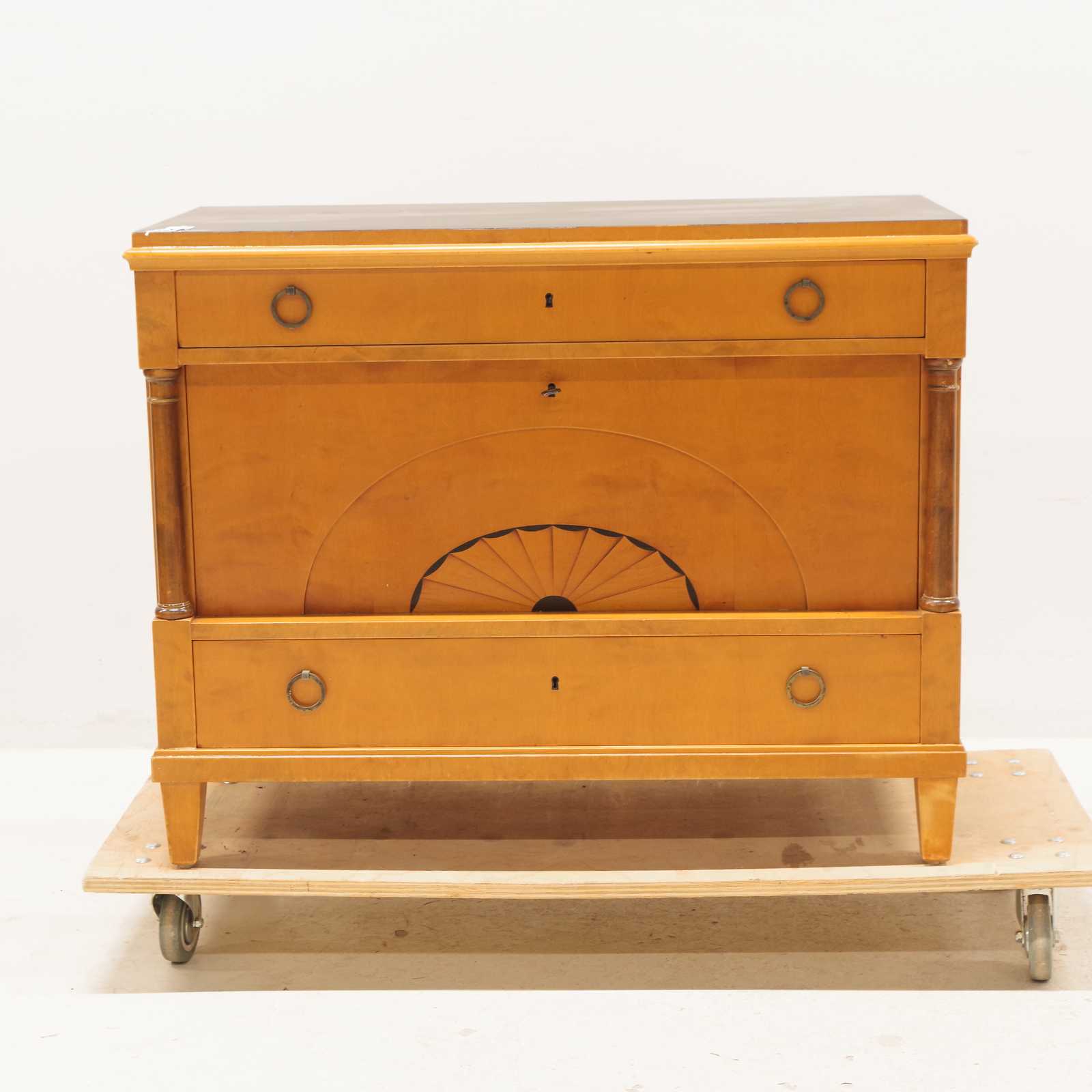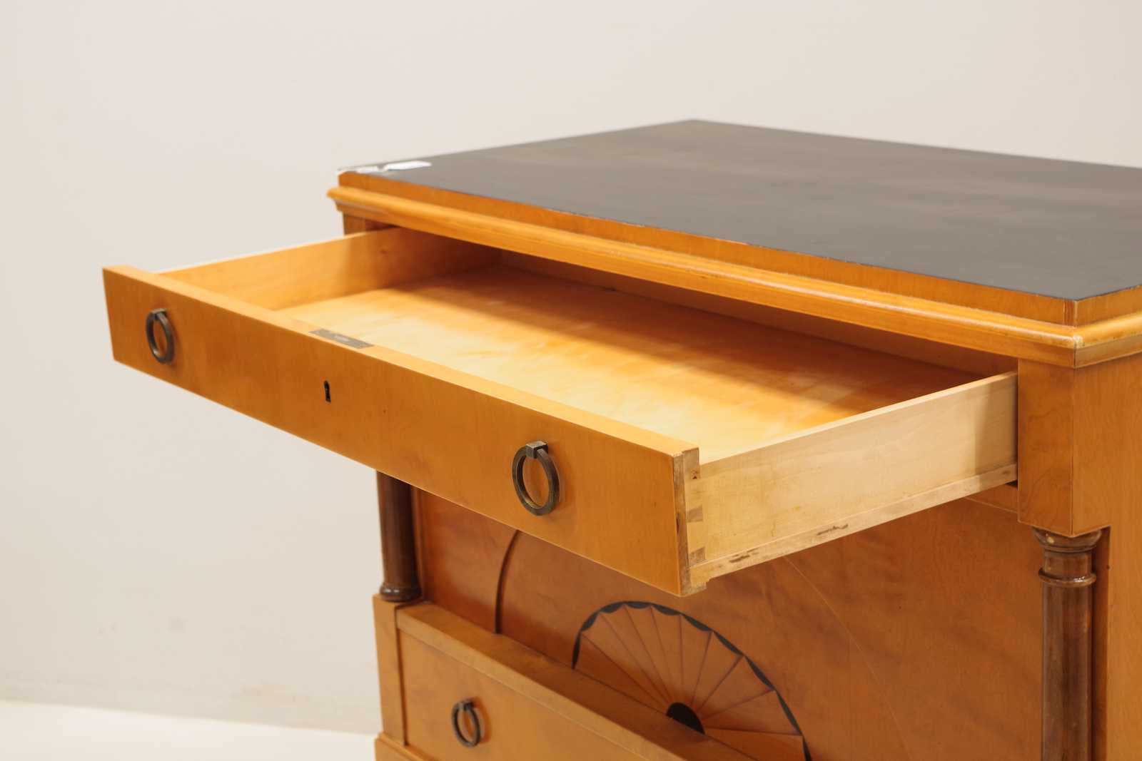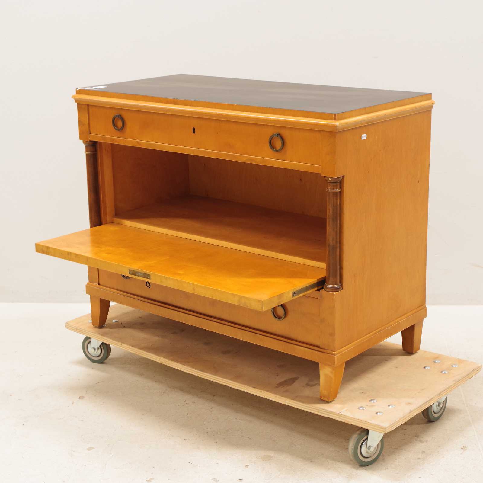 BYRÅ/BARSKÅP, empire-stil, björk, intarsia, 1900-talets första hälft, H: 75x 95x 46