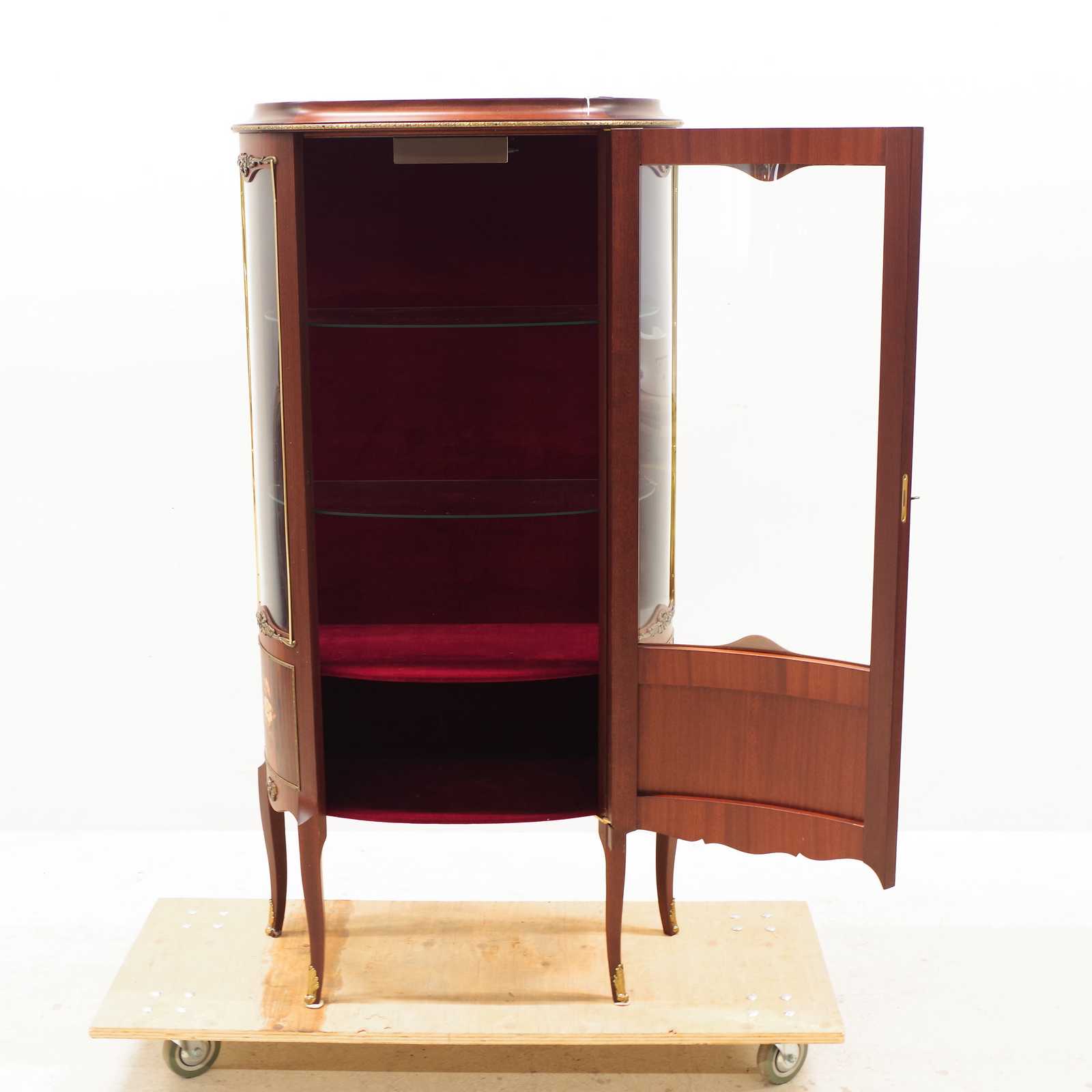 Bilder VITRINSKÅP med intarsia, beslag i mässing, 1900 talets mitt. H:144x 72x 35cm