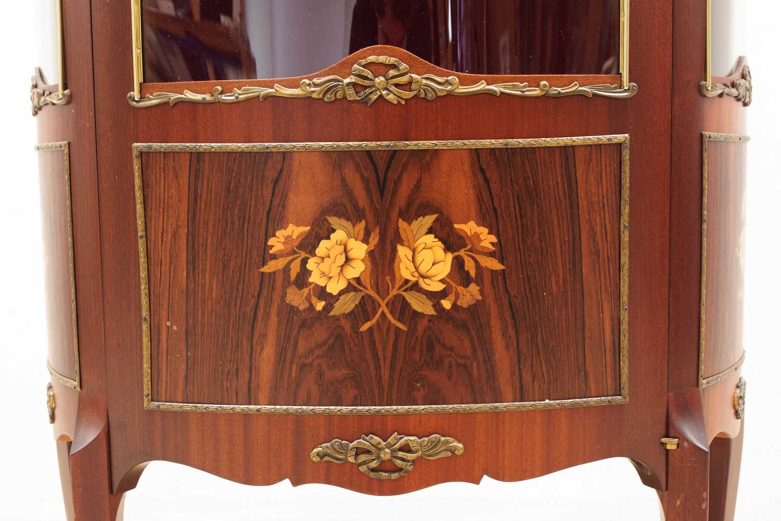 VITRINSKÅP med intarsia, beslag i mässing, 1900 talets mitt. H:144x 72x 35cm