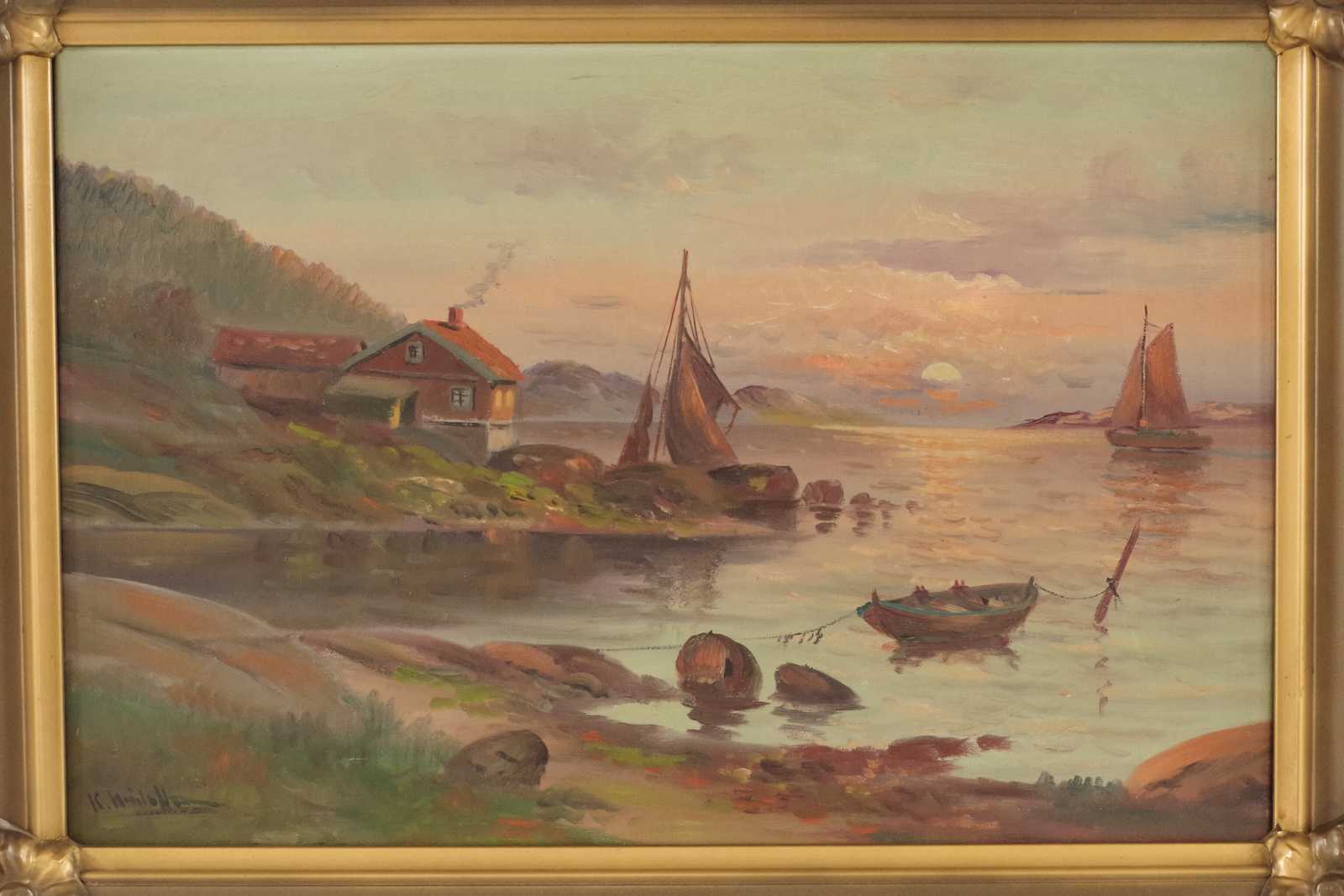 Auktioner  Konst & Grafik  TAVLA Oidentifierad konstnär, signerad, olja på duk, ram i plast. 59x39cm bildytans mått