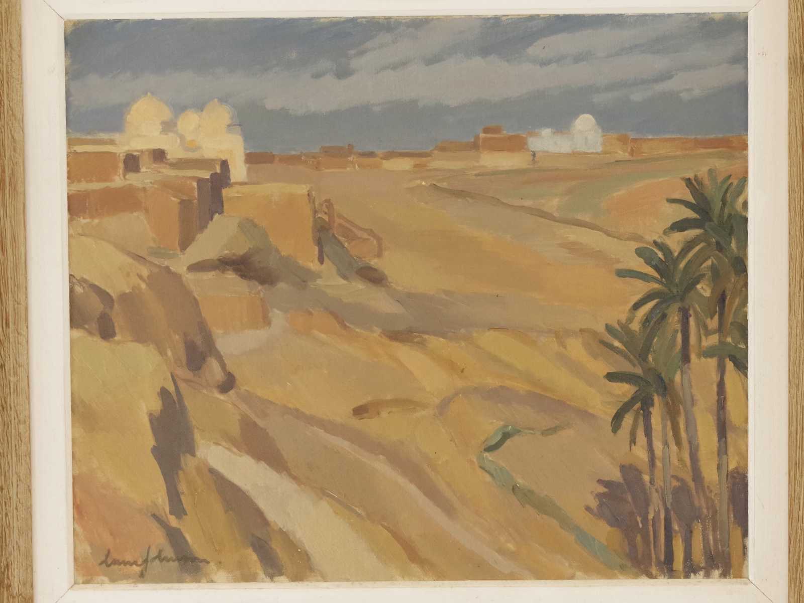 TAVLA Lasse Johnsson, signerad, olja på pannå. 54x45cm bildytans mått