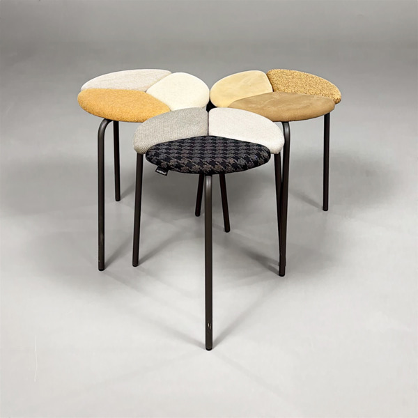 3 unika pallar ifrån Materia, modell Patch formgiven av Axel Bjurström och Mia Cullin. Pallarna är tapetserade utav spilltyger ifrån deras produktion och tidigare projekt. Varje pall är gjord av en sits i tre delar som alla blir klädda i ett eget tyg som utgår ifrån en färgnyans.