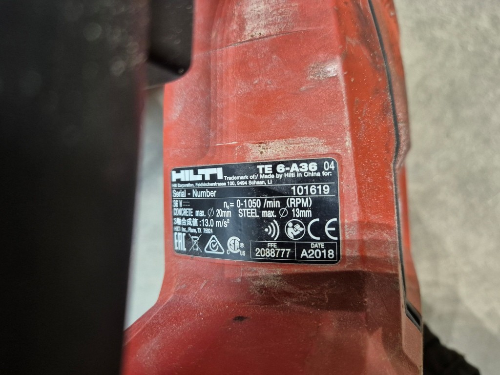 Batteriborrhammare Hilti 36vModell: TE 6-A36Funktionstestad: OkOkänd batterikapacitet