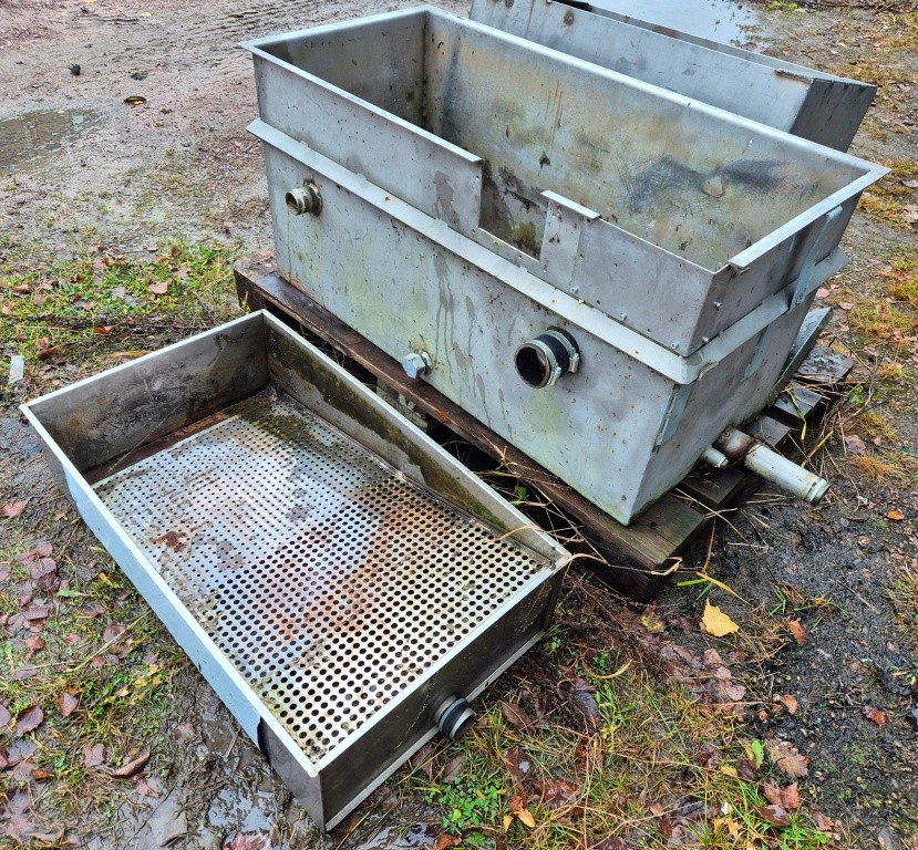 Rostfria kärlMått:1st 82x49x20 (LxBxH)1st 80x36x51cm (LxBxH)1st 105x50x50cm (LxBxH)