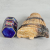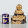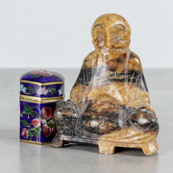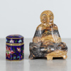 Skulptur och dosa, Kina, Sten och emaljerad mässing