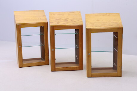 Monterskåp, 3st, furu, glas och metall, 5 st glasskivor, 1900 - talets mitt, 50 x 31 cm, höjd baksidan 88 mm, ej nyckel, en är låst