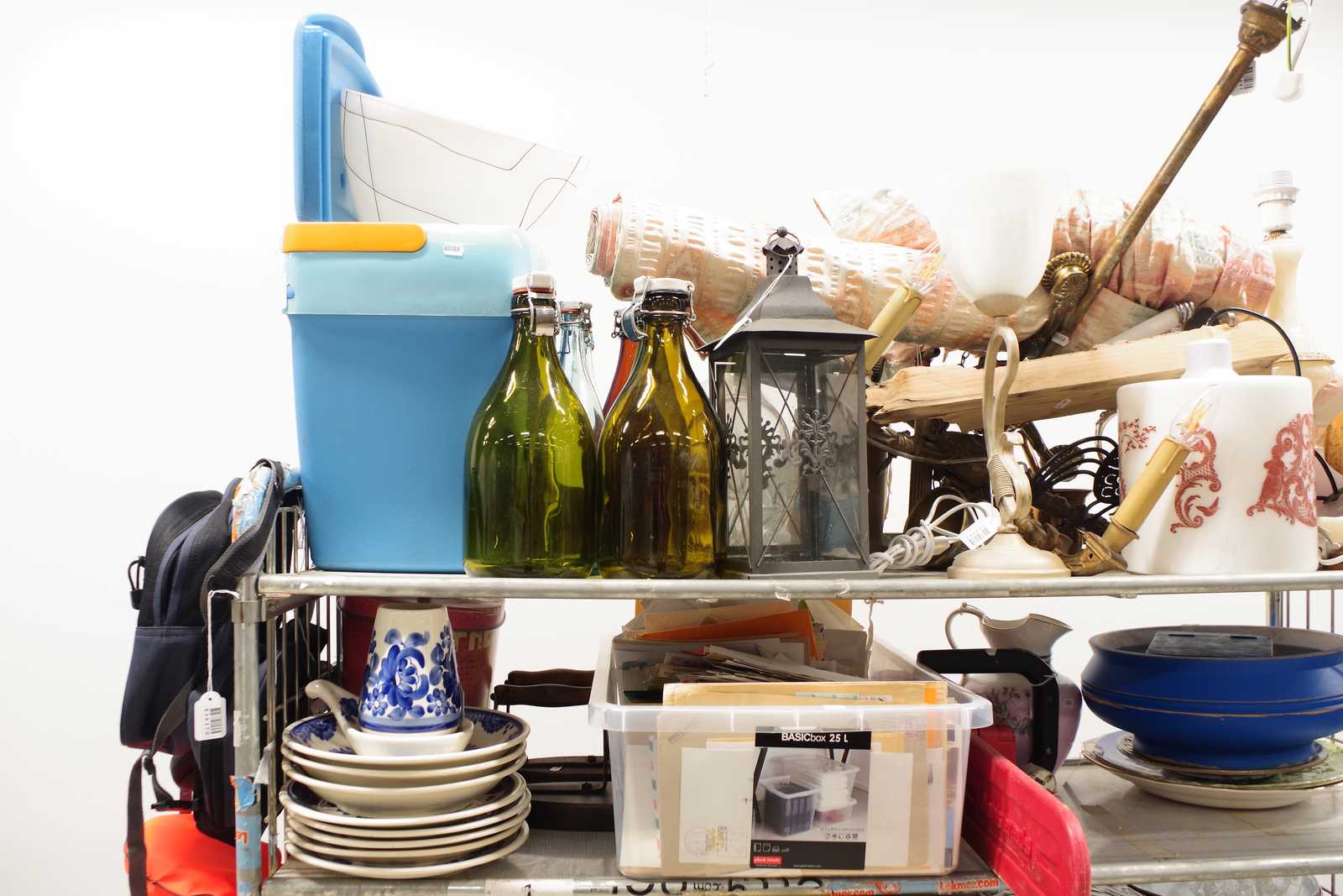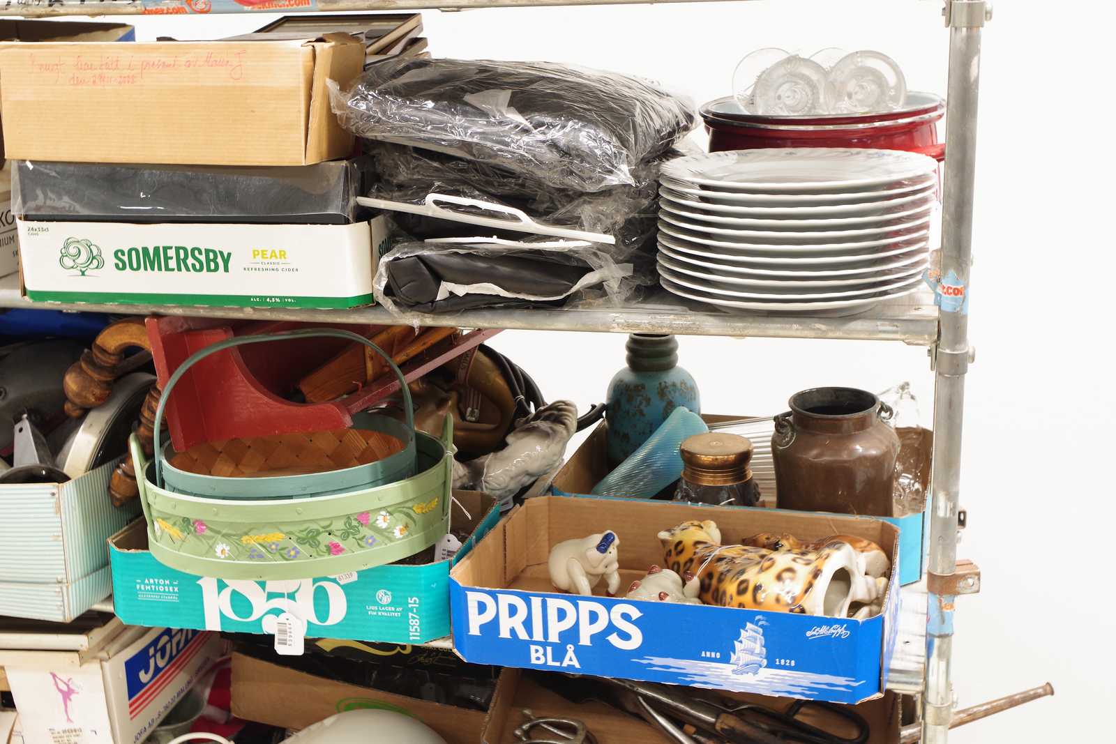 Bilder Parti OSÅLT GODS från tidigare auktioner. Säljes till förmån för barncancerfonden. Obs! Köparen måste ta hela partiet. (skador kan förekomma, vagnen ingår ej)