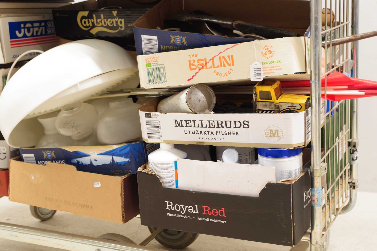 Parti OSÅLT GODS från tidigare auktioner. Säljes till förmån för barncancerfonden. Obs! Köparen måste ta hela partiet. (skador kan förekomma, vagnen ingår ej)