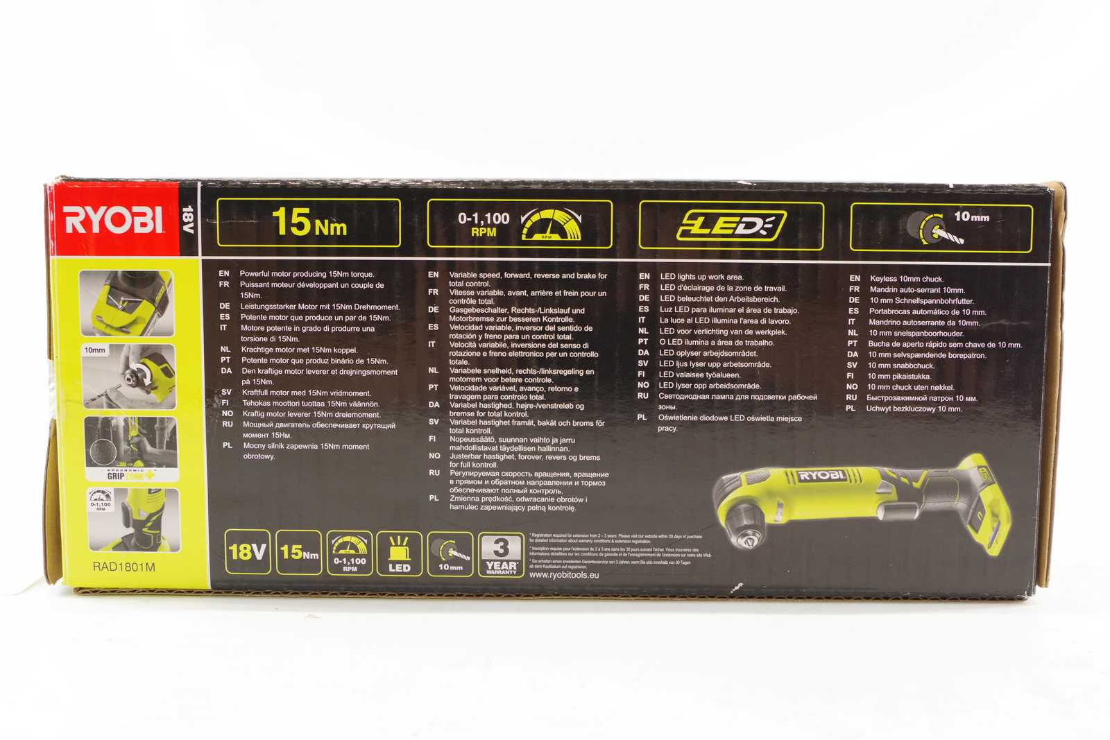 Bilder VINKELBORRMASKIN 18V, Ryobi Ny OBS! 25% moms tillkommer på klubbat pris.