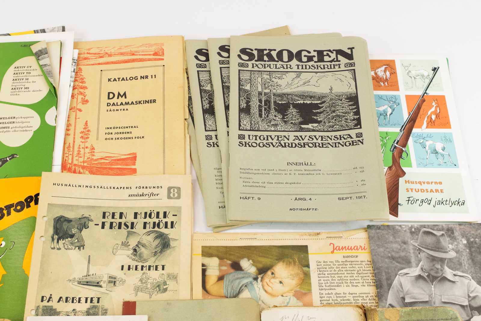 Bilder parti KATALOGER, BRUKSANVISNINGAR & PRISKURANTER Bl.a. Första hjälpen traktorstopp, Katalog 11 Dalamaskiner Sågmyra 1961