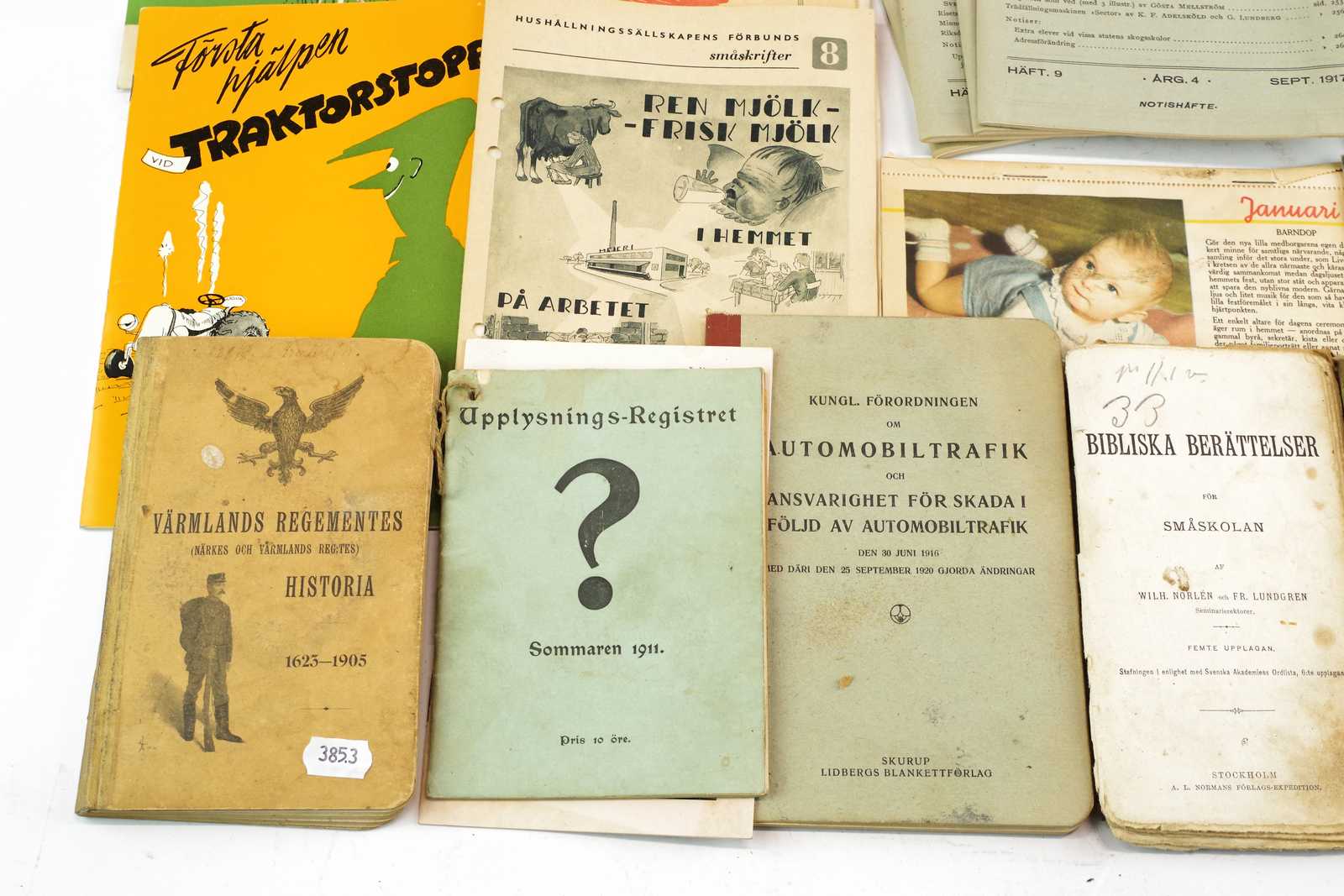 Auktioner parti KATALOGER, BRUKSANVISNINGAR & PRISKURANTER Bl.a. Första hjälpen traktorstopp, Katalog 11 Dalamaskiner Sågmyra 1961