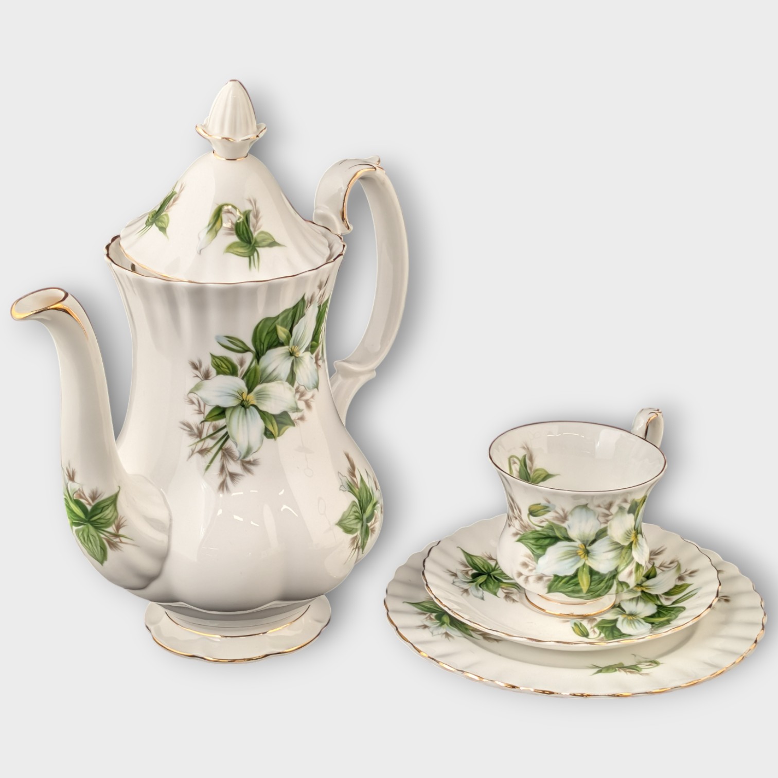 12 Kaffekoppar med fat 12 assietter, uppläggningsfat, gräddsnipa och kanna