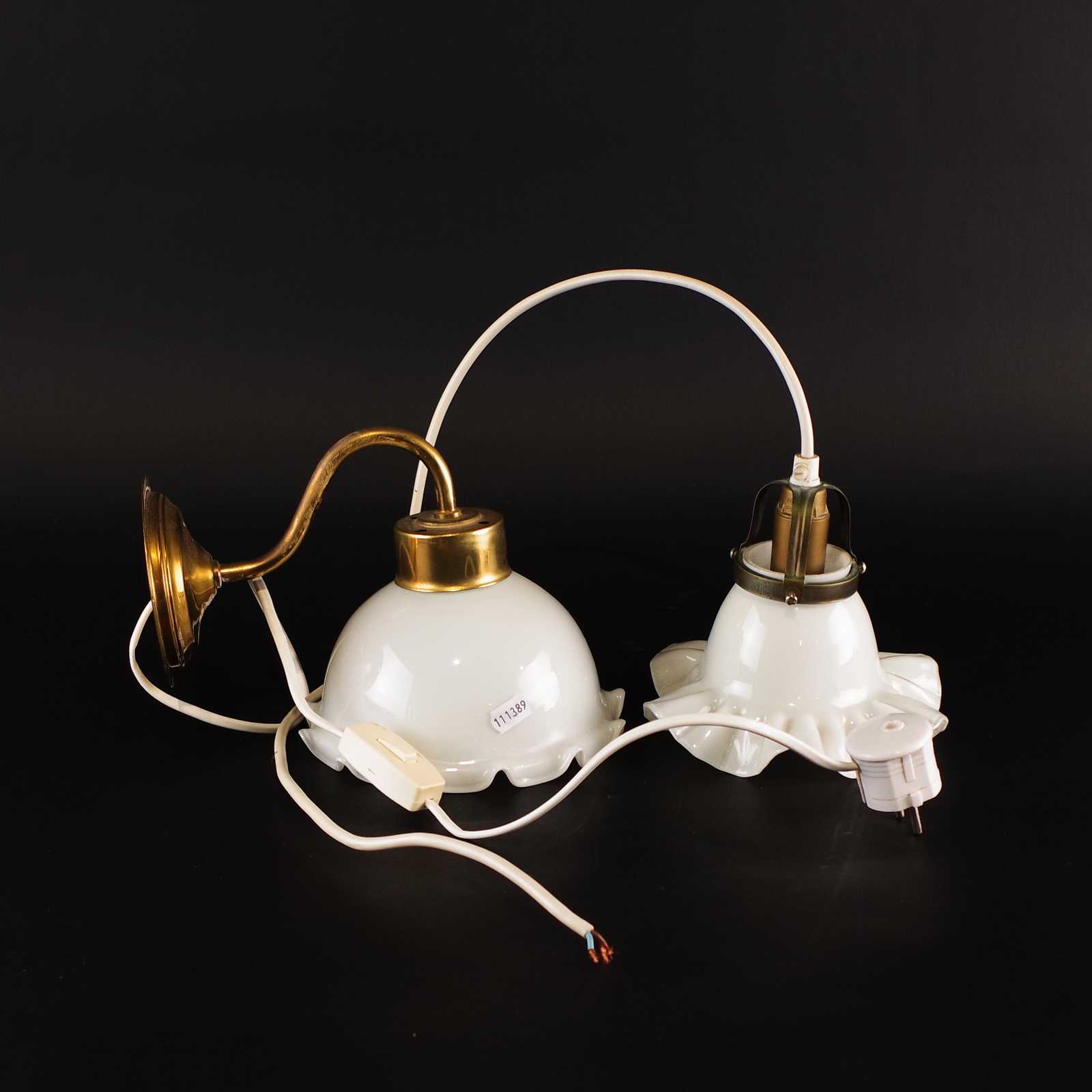 Bilder FÖNSTERLAMPA & VÄGGLAMPA äldre, mässing/glas veckade kanter. D:16cm största.