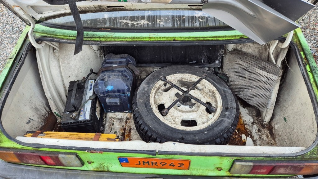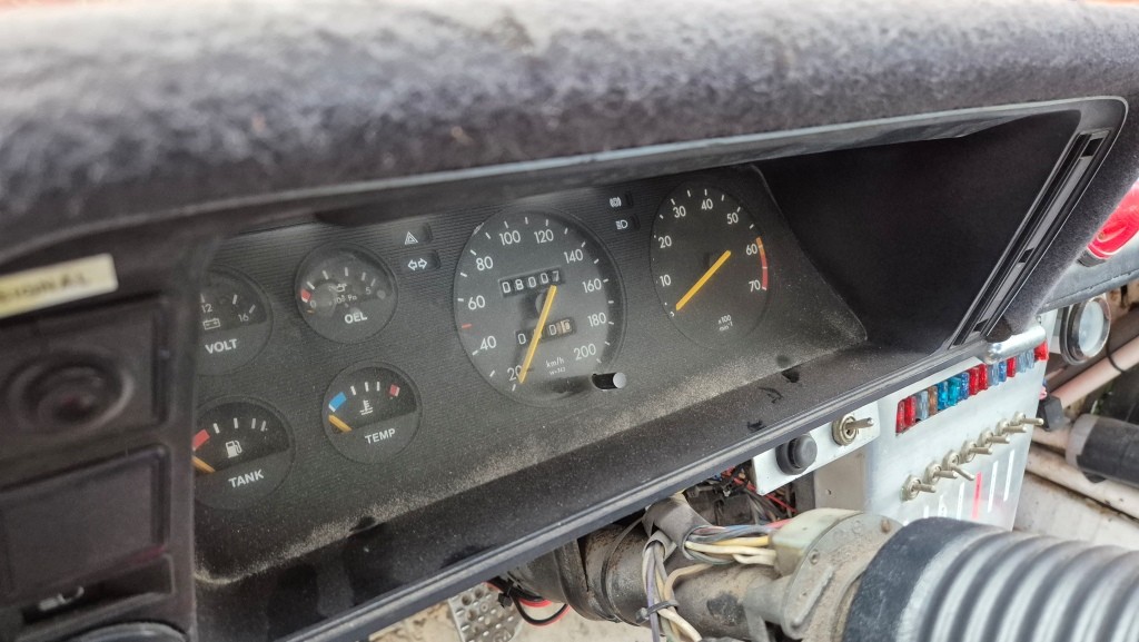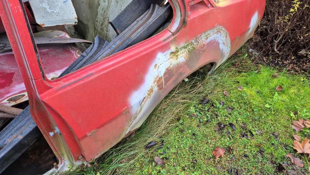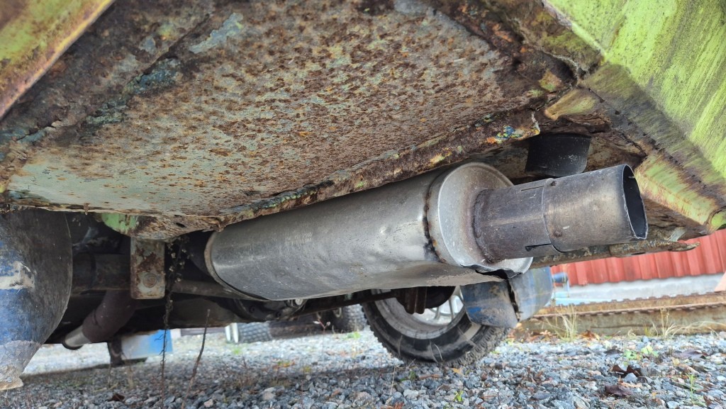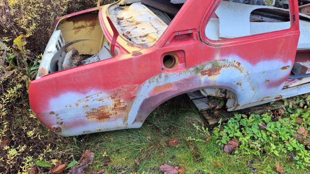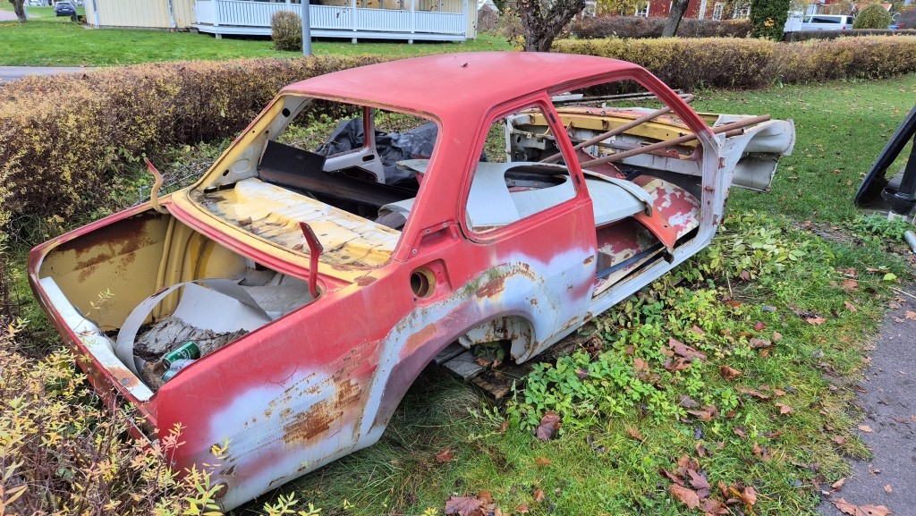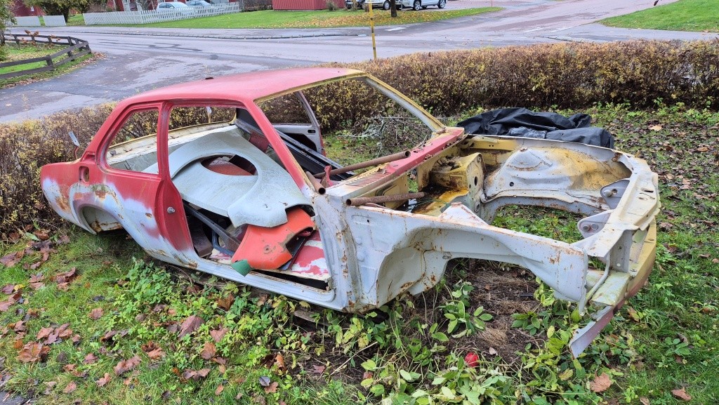 Har stått utomhus i några år, därav utseendet. Rost finns främst på skärmkanter, Bromsar behöver en genomgång. Bussningar till bakaxeln bör bytas