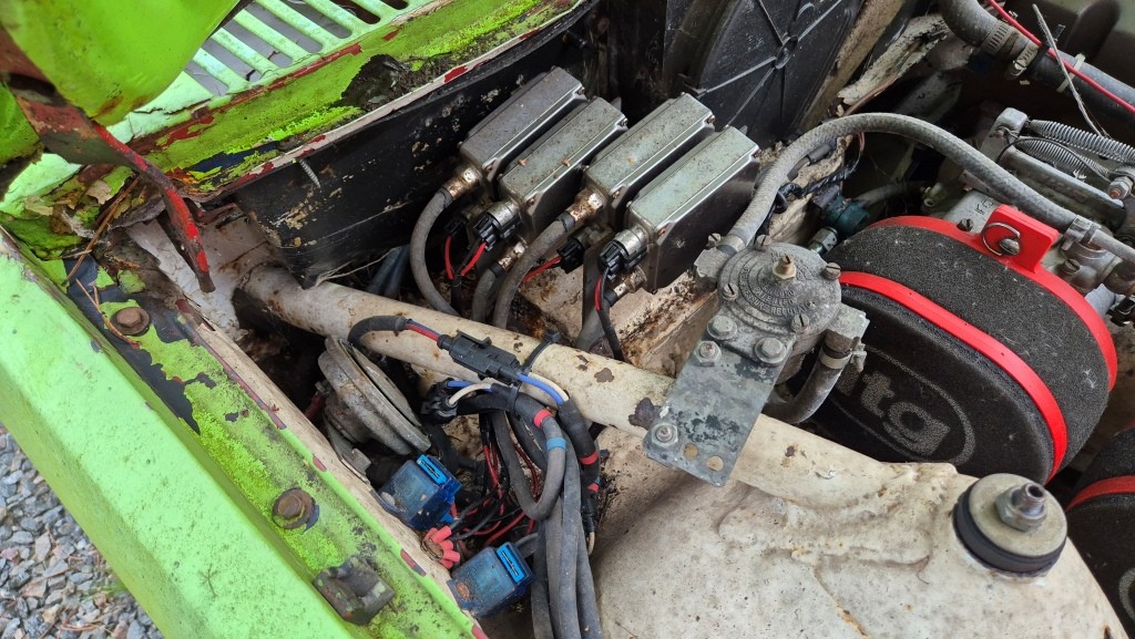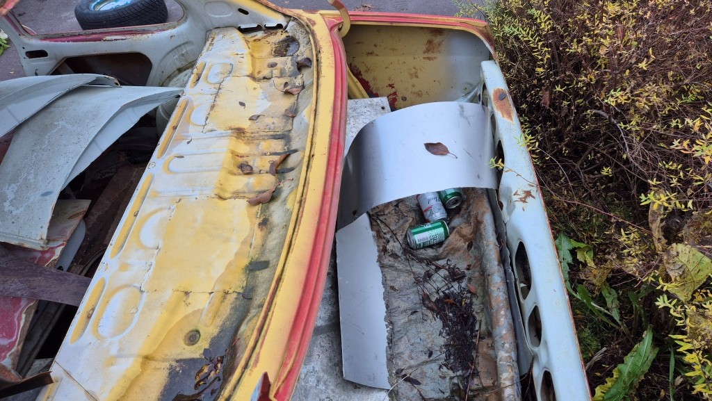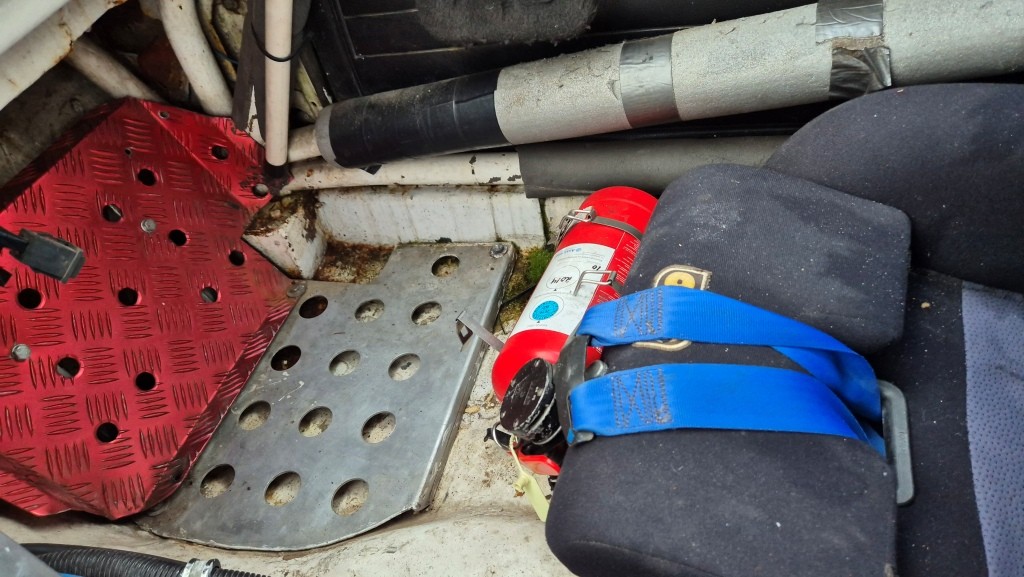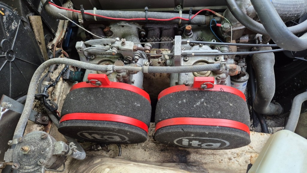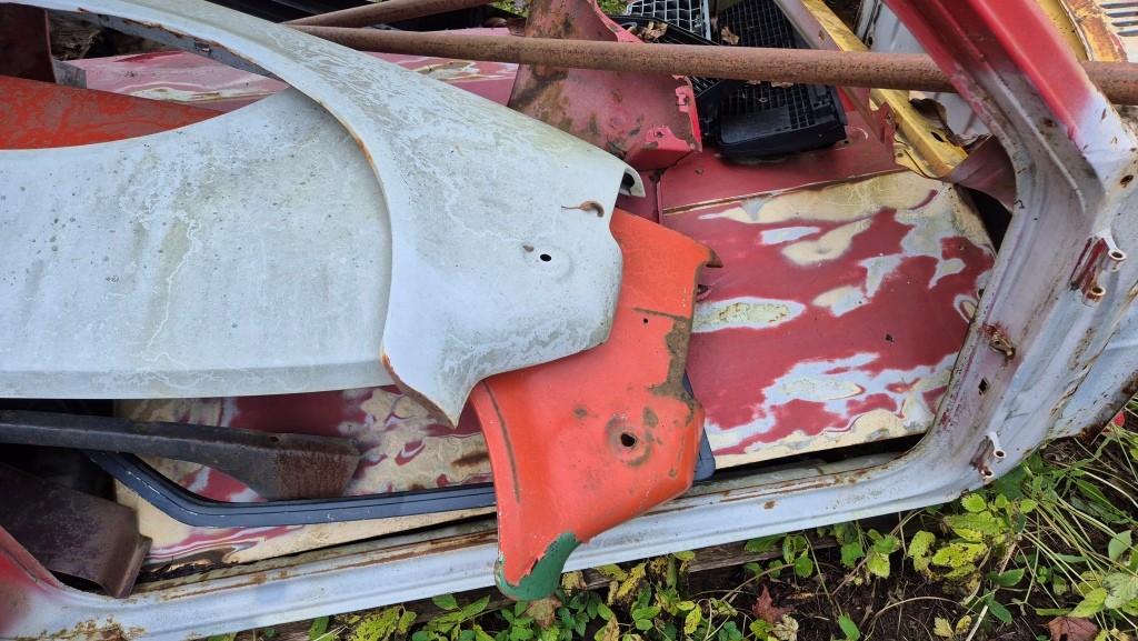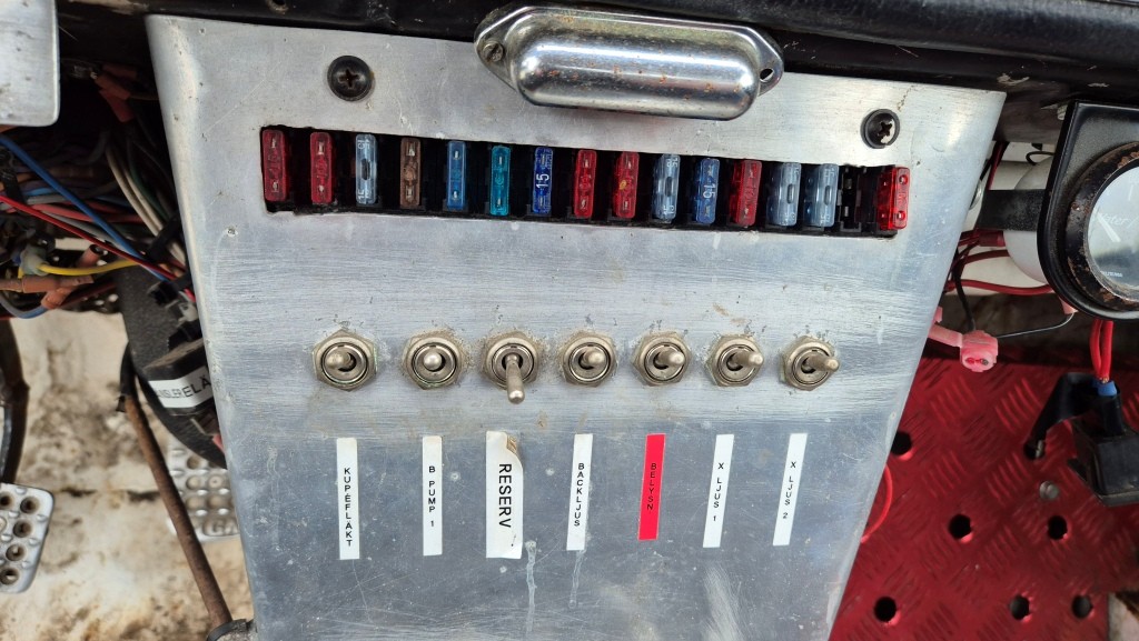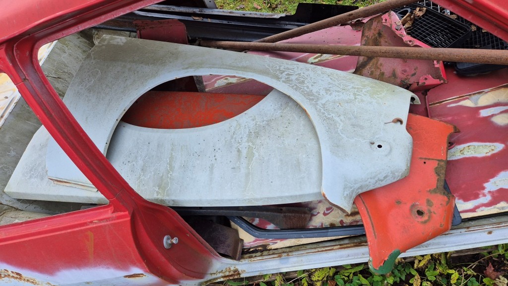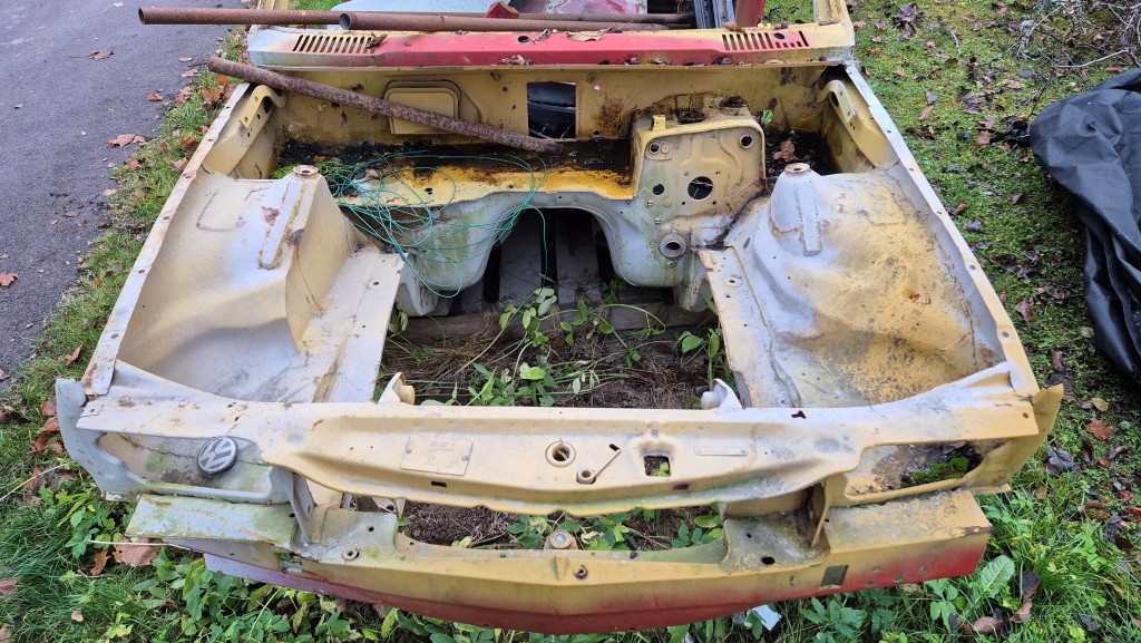 Har stått utomhus i några år, därav utseendet. Rost finns främst på skärmkanter, Bromsar behöver en genomgång. Bussningar till bakaxeln bör bytas