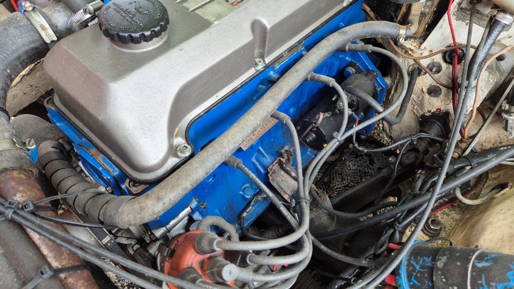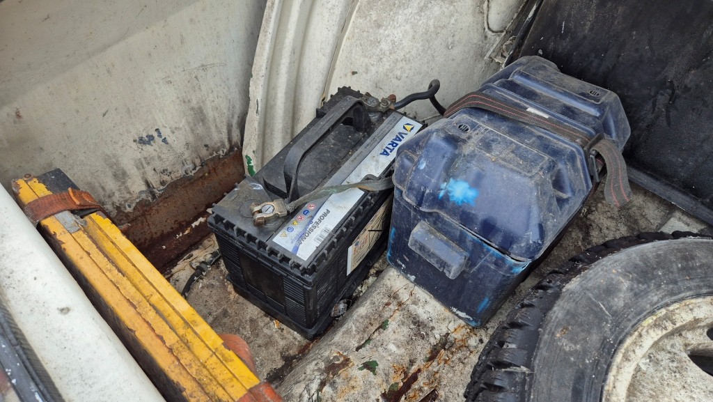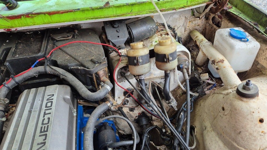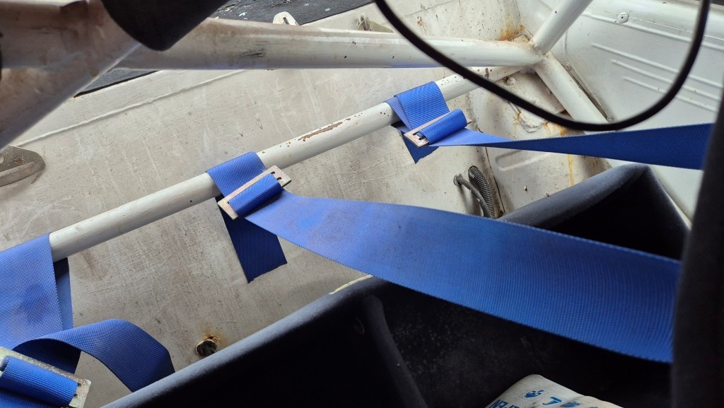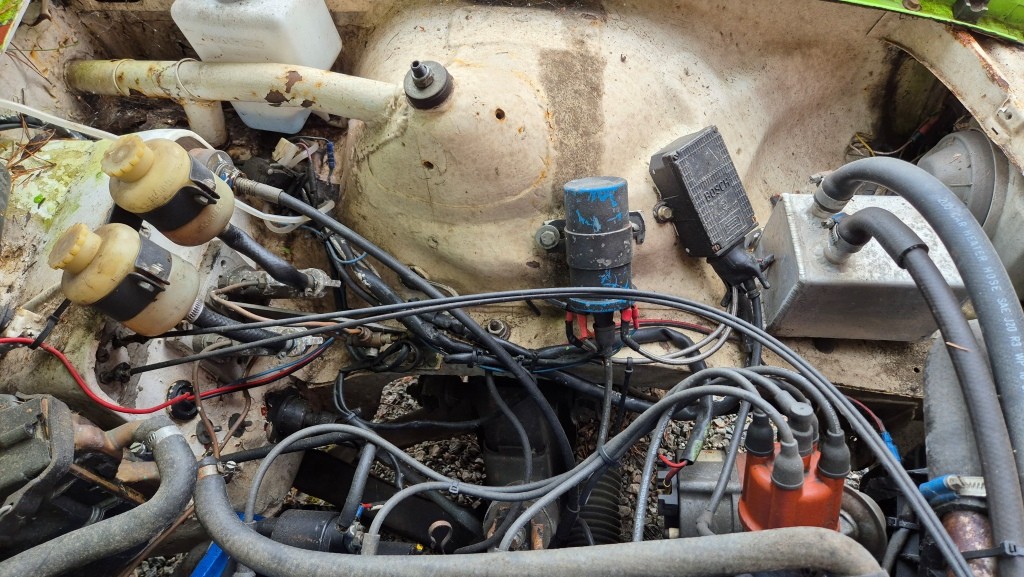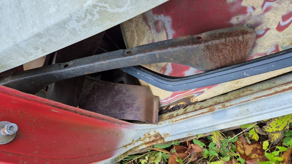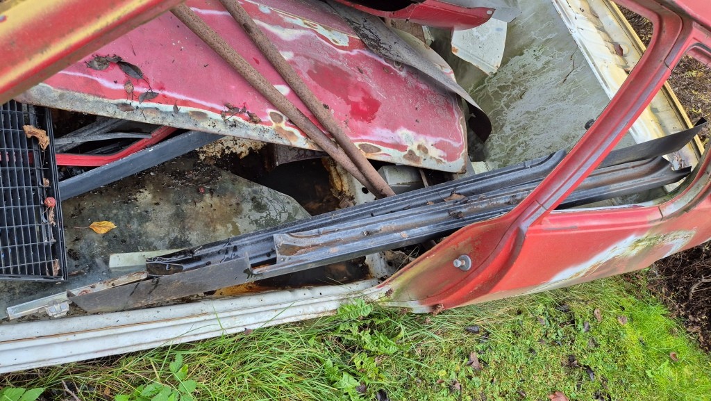 Har stått utomhus i några år, därav utseendet. Rost finns främst på skärmkanter, Bromsar behöver en genomgång. Bussningar till bakaxeln bör bytas