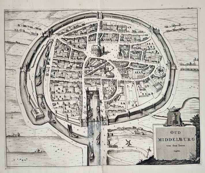Bilder Mattheus Smallegange (1644–1710) – Map of Middelburg: Oud Middelburg (Netherlands) – Engraving (c. 1696)
