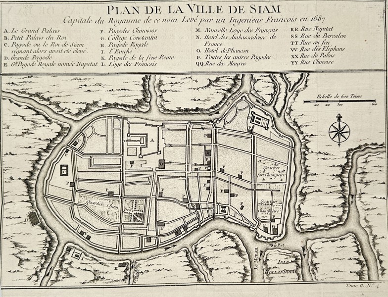 Bilder Jacques-Nicolas Bellin (1703–1772) – Map of the City of Ayutthaya: Plan de la Ville de Siam – Engraving (c. 1750)