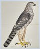 This striking zoological illustration depicts a Honey Buzzard (Falco Buteo or Accipiter Buto), a large bird of prey, shown standing in profile. The print is characterized by detailed plumage patterns, a sharp beak, prominent yellow talons, and expressive eyes, rendered with a combination of fine lines and hand-coloring to achieve a lifelike appearance.