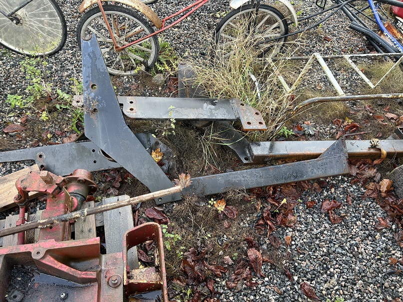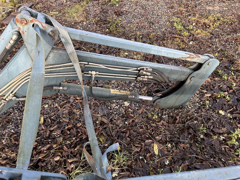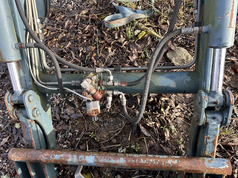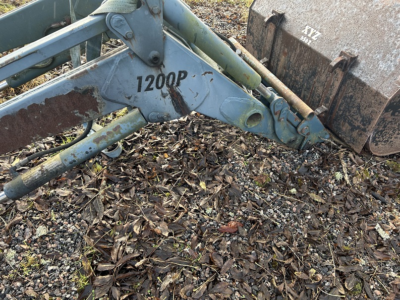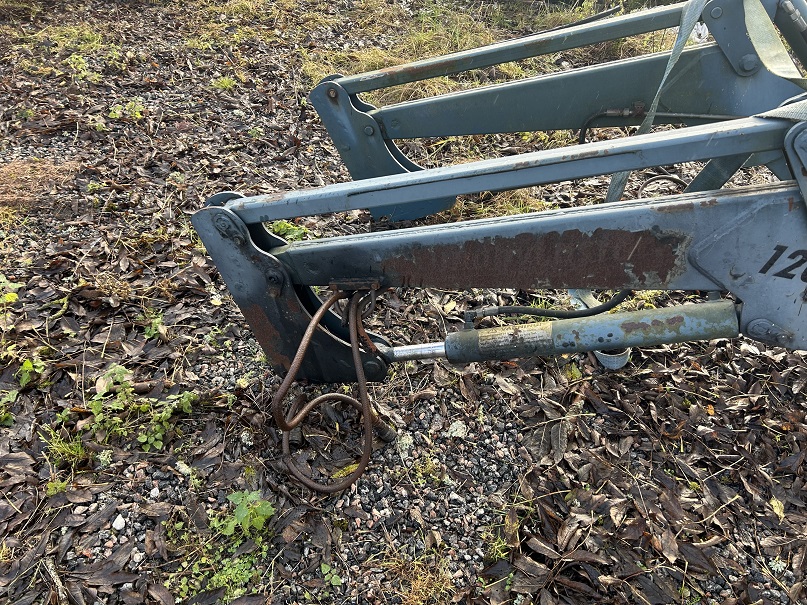 Traktorn varit utsatt för brand, men lastare och ventilpaket klarat sig fint, behöver kompletteras med slangar samt reglage/spak.
