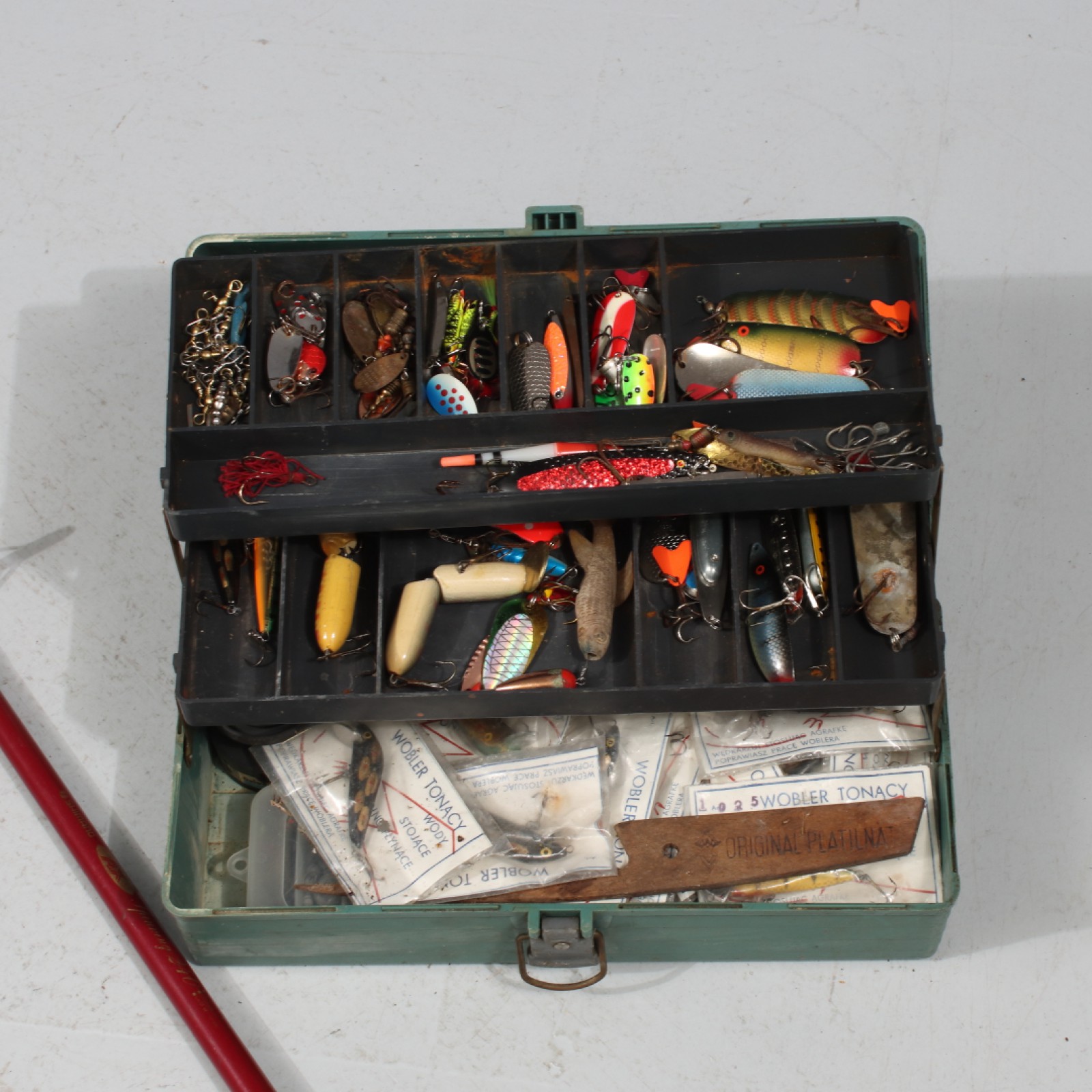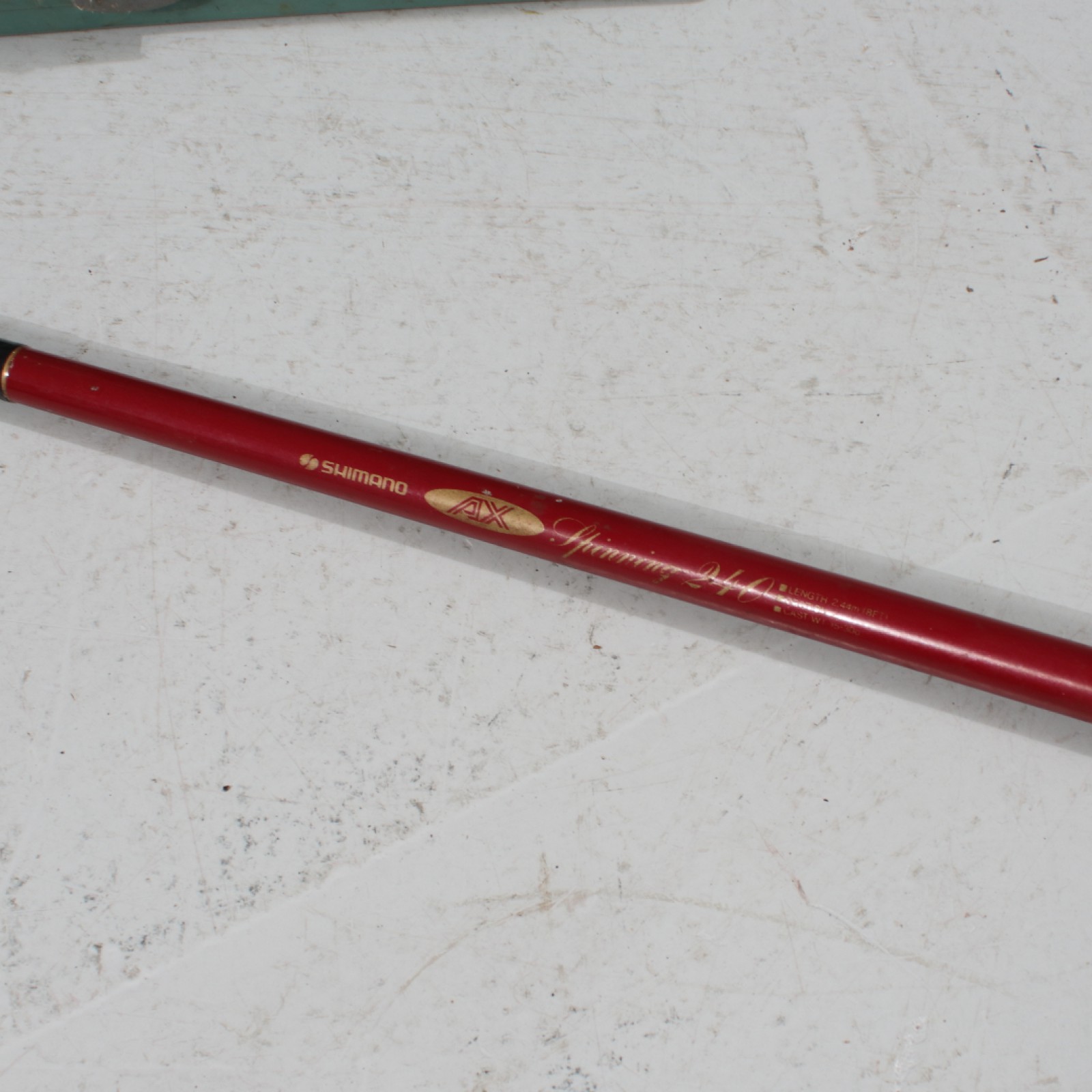 1st Shimano spö med rulle, 1st Cumings håv samt 1st draglåda med drag (för innehåll se bilder). (vån3)